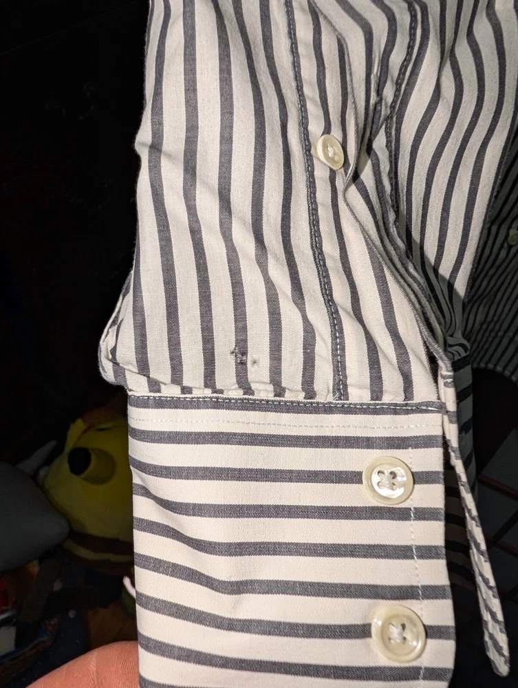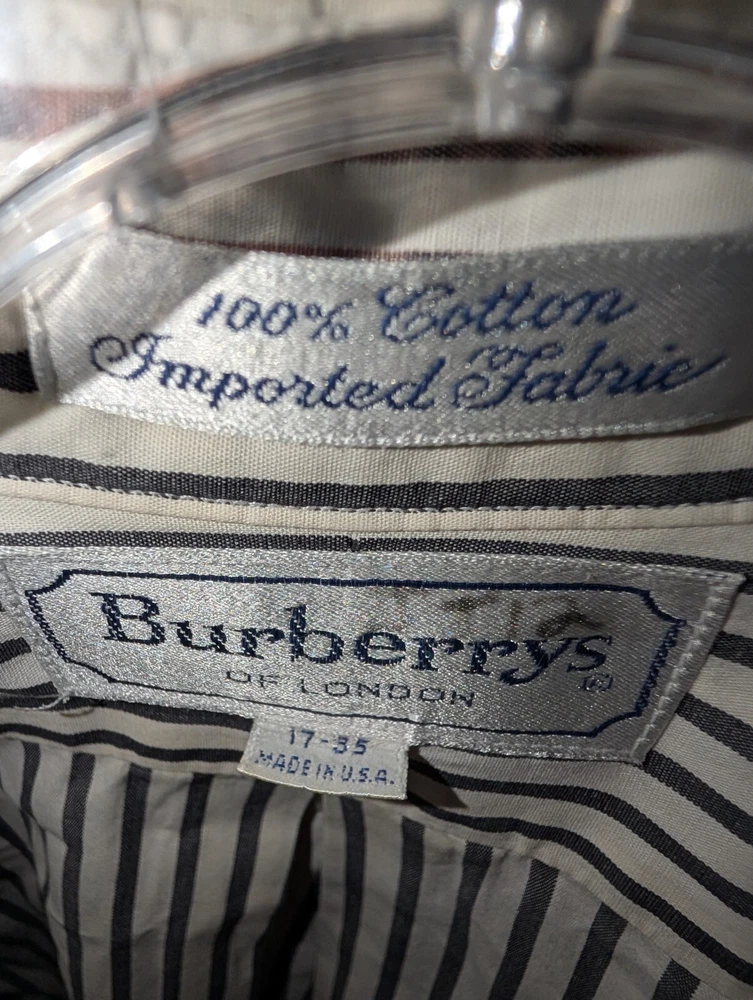 Vintage Burberrys of London dress shirt 17/35. This is a very well made shirt and has been well maintained over the years. Full disclosure There is a small spot on the right cuff and a very hard to see tiny spot near the collar. Pictures included of both