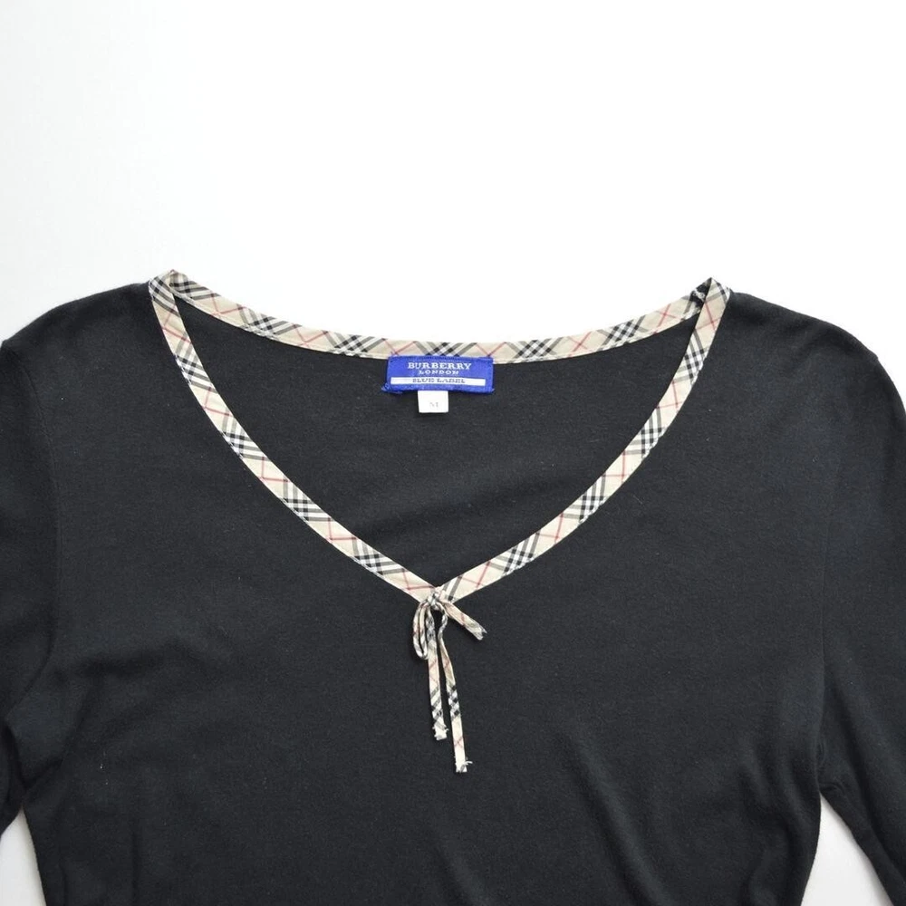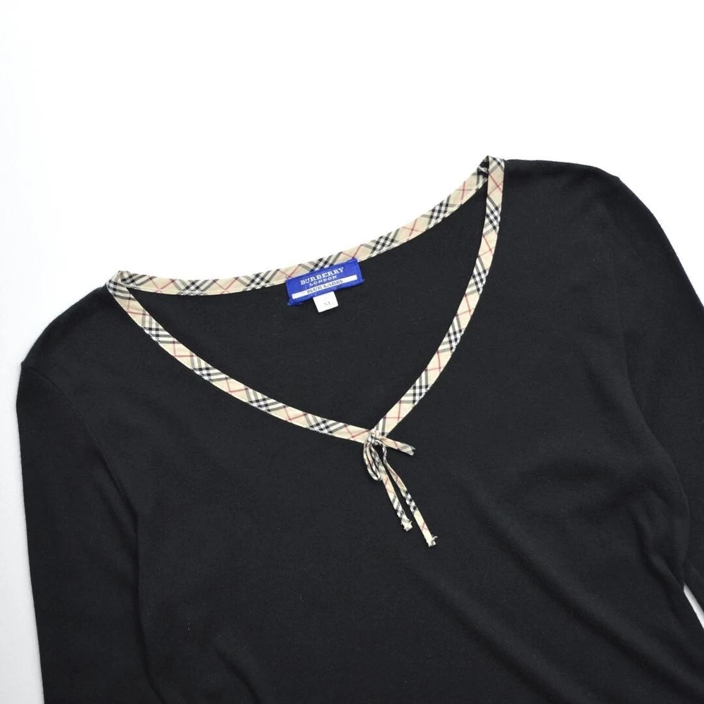 Burberry Piping Half sleeve Cotton Cut & Sewn Black Nova check Women Size M Used