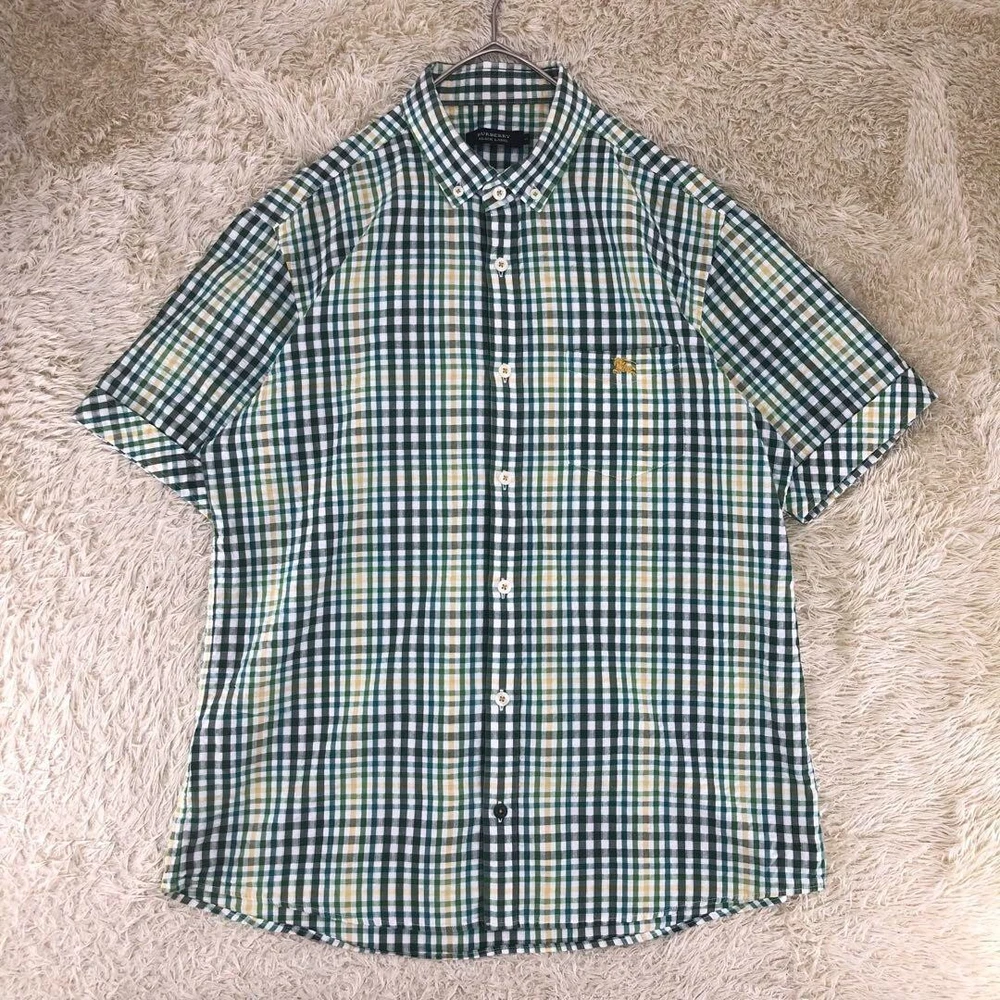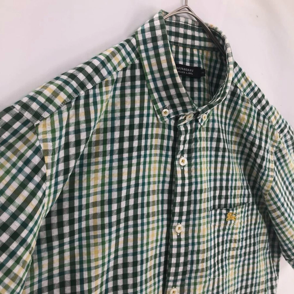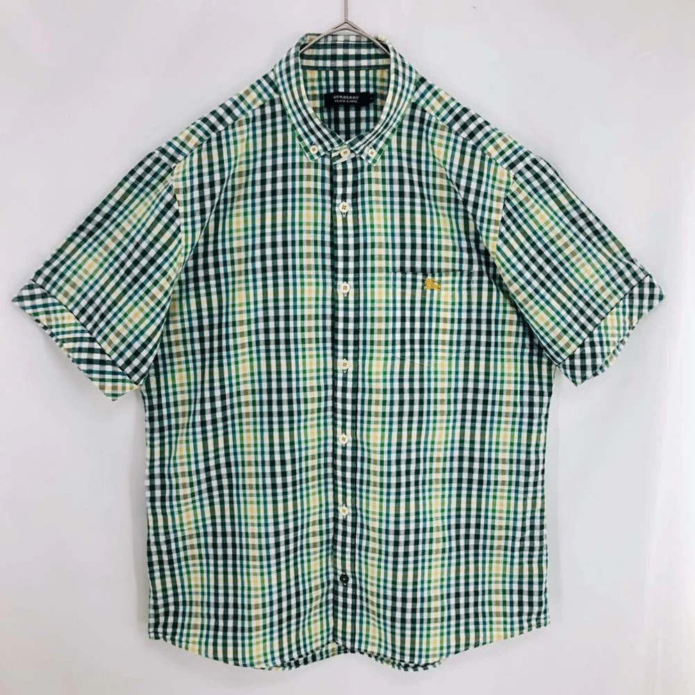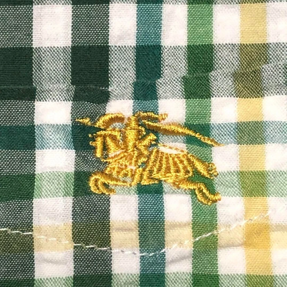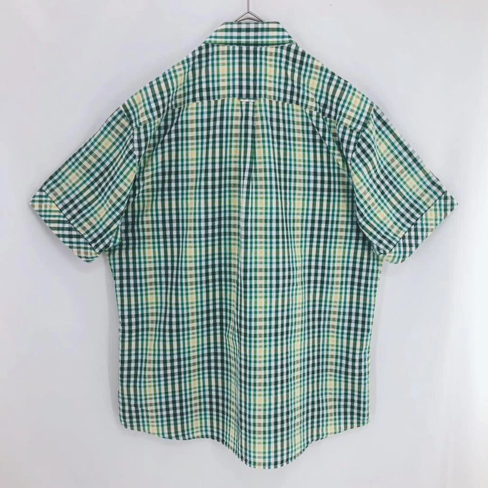 Burberry Seersucker Short Sleeve Check Shirt Cotton Green Men Size 3 Used