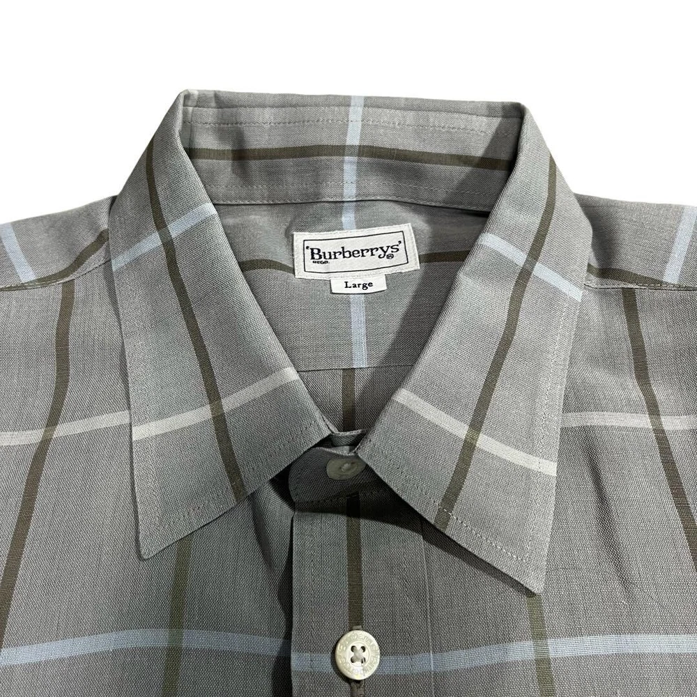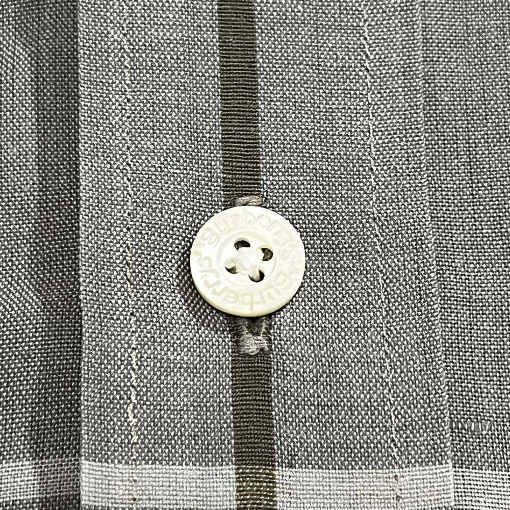 Brand: Burberry MPN: NA Personalize: No Product Line: NA Neckline: Collared Vintage: No Chest Size: 40.9 in Garment Care: NA Closure: Button Color: Gray Model: NA Type: Button-Up UPC: Does not apply Department: Men gtin13: Does not apply Features: Pockets Fit: Slim Fabric Type: NA Size: L Accents: Button Occasion: Business, Casual, Travel Season: Fall, Spring, Summer Sleeve Length: Short Sleeve Material: Cotton, Linen Theme: NA Character: NA Collar Style: Button-Down Pattern: Check Size Type: Regular Handmade: No