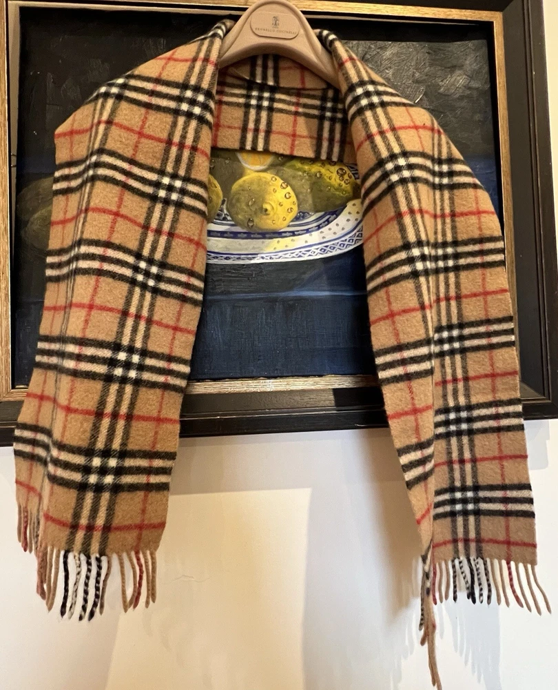 Burberrys Nova Check Classic Scarf. Made of high-quality wool and crafted in the United Kingdom, this unisex rectangle scarf is perfect for keeping you warm and stylish. The scarf features a fringe accent, a rectangle shape, and a multicolor check pattern that is perfect for any occasion. Very good to excellent condition. No flaws.
