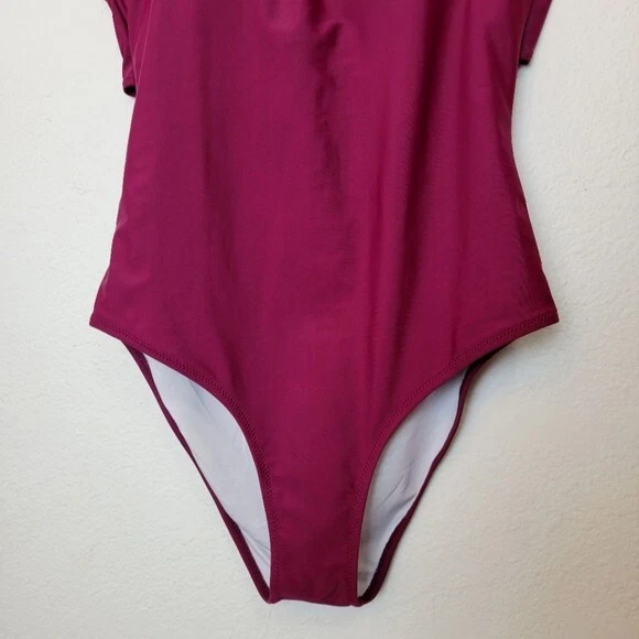 Cupshe Size Large Burgundy Crochet Accented Halter One Piece Swimsuit Boho. Ships With USPS First Class Mail -Adorable one piece swimsuit by Cupshe in a burgundy/wine colored shade with Ivory crochet detailing at the high neckline -Size Large -Halter neck -Shelf bra with padded removable cups -Lined -100% polyester -Measurements are approximately 16 in armpit to armpit 17 in across the hips 28 in from the top of the crochet to crotch -Preloved in excellent condition! ------------------------------------------------ Thanks for looking…have a GREAT DAY! @mandajane223