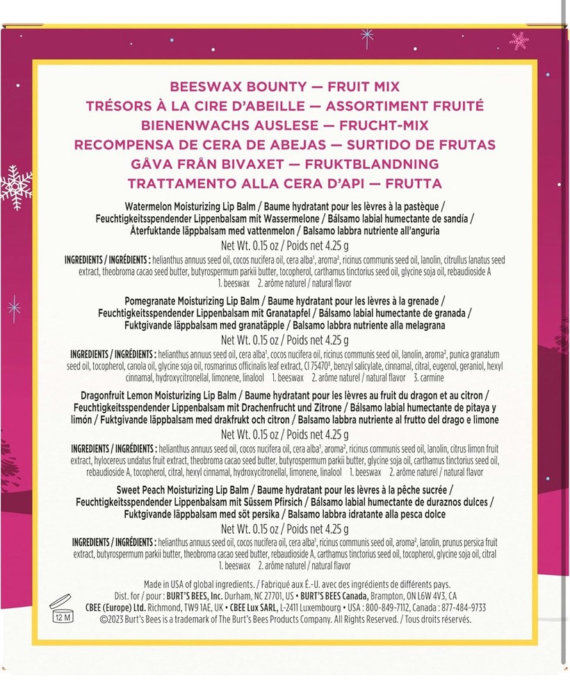 Burt's Bees Beeswax Bounty Lip Balm Gift Set 4 Flavors Assorted Fruit - NEW.