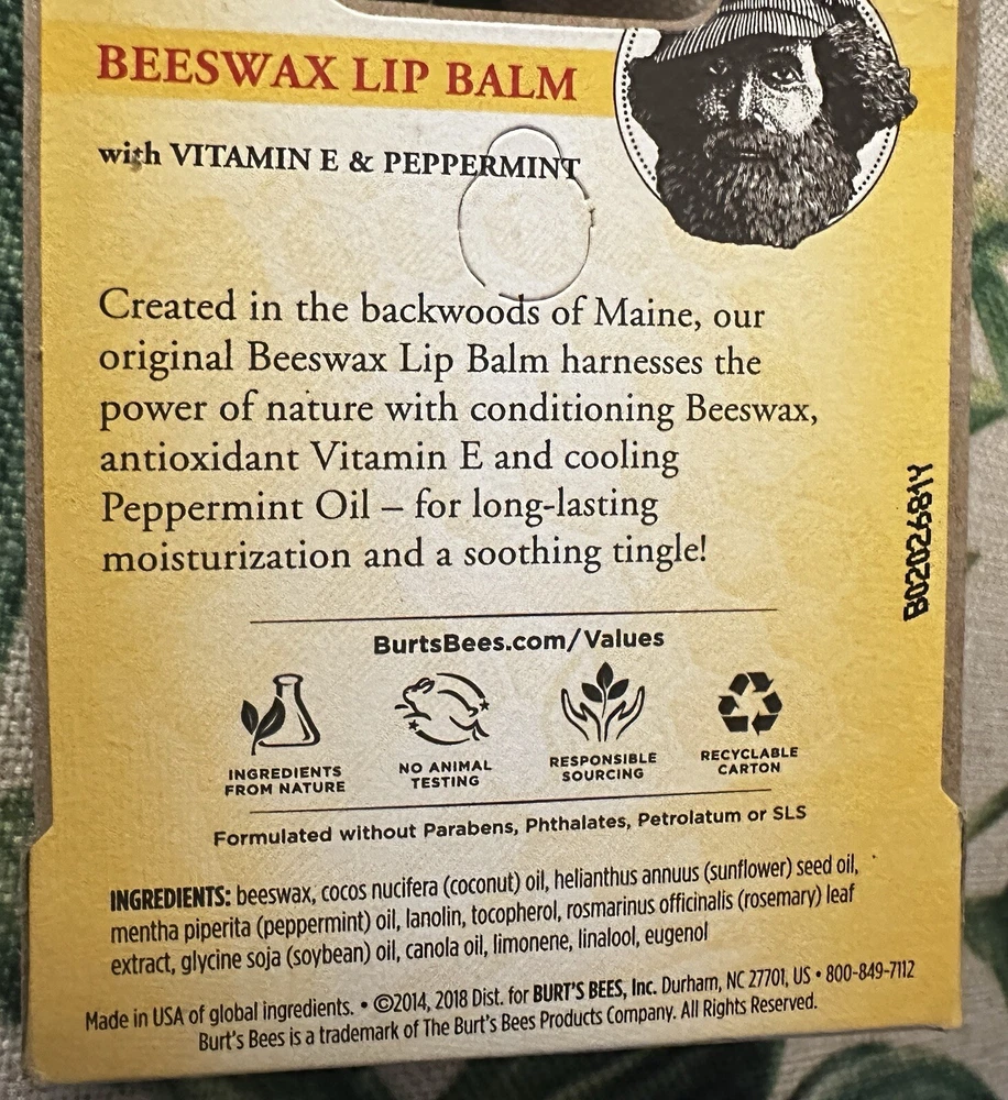 Burt's Bees Moisturizing Lip Balm Beeswax Vit E Peppermint 0.15 oz 1 Count Condition : New Without Tags Size: As shown (Please see photos provided for more details) Please allow 0.5 error due to manual measurement. Color: Note: Due to your monitor settings and monitor pixel definition, the color you see may not be as exact as the actual color of the product. Inclusion: 1 Lip Balm Only FEATURES -Moisturizing Lip Balm -Designed to provide long-lasting moisture. -Gives a natural glow to lips. -Soothes chapped lips -1 Stick -Net Wt. 0.15oz (4.25g) Ingredients: Cocos nucifera (coconut) oil, helianthus annuus (sunflower) seed oil, helianthus annuus (sunflower) seed oil, mentha piperita (peppermint) oil, lanolin, rosmarinus officials (rosemary) leaf extract, tocopherol, soybean oil, canola oil, Limonene, linalool, eugenol Directions: Apply lip balm liberally to your lips as often as needed, particularly in dry, cold or windy conditions. π This comes from a smoke free home. π Whenever possible, we use clean recycled shipping materials to help with the environment. π We list as much information as we can about the item we sell but please check the photos and descriptions provided. Feel free to message US here at eBay if you have any questions before placing your order. π All sales are photographed and recorded before, during, and after packing for buyer and seller protection. π It would be greatly appreciated if you leave a feedback after receiving the item and are pleased with our transaction. π We are always adding new items, so please go ahead and add us to your favorites. THANK YOU FOR VISITING !