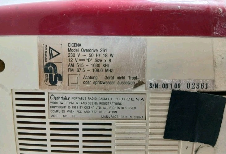 Bush Overdrive Cicena Classic Radio/Lettore di Cassette Portatile AM/Fm/Stereo.