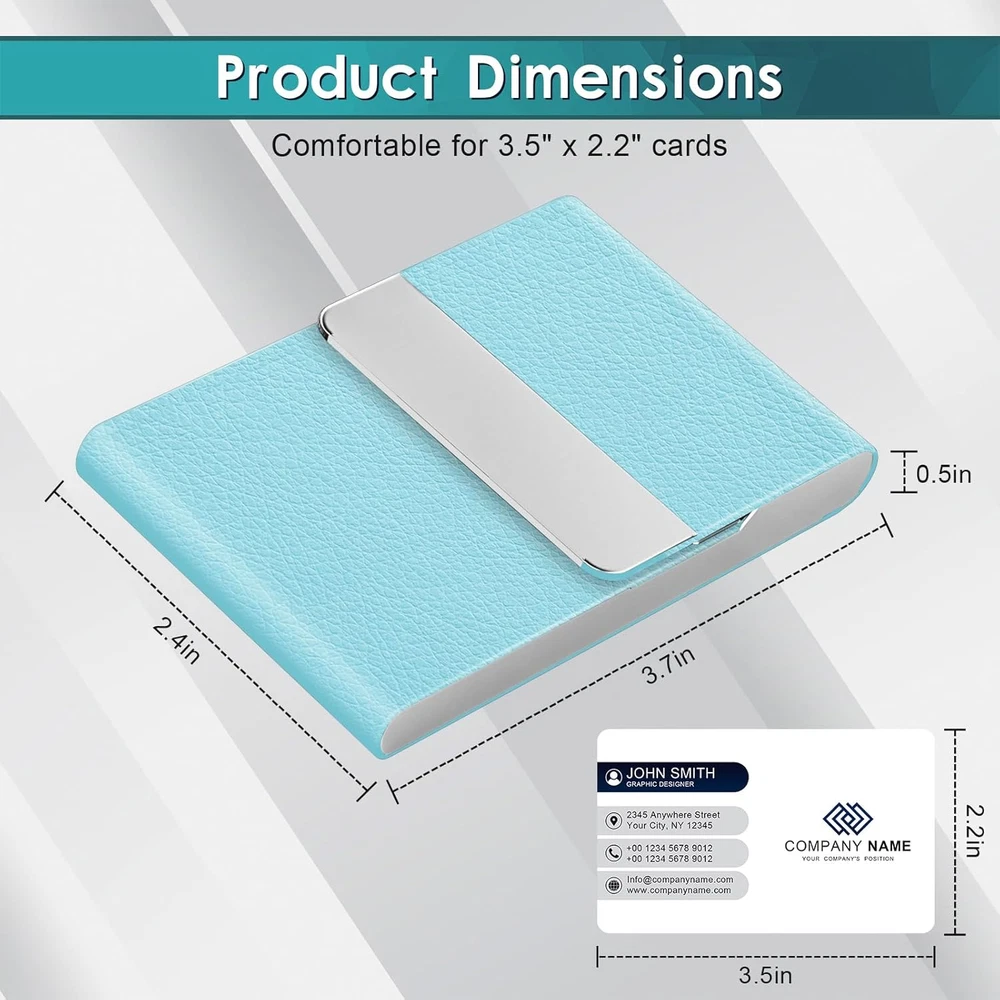 Store New Arrivals Add to Favorite View Feedback Contact Business Card Holder, Pocket Business Card Case, Slim Card Holders for Men or Women, PU Leather Business Card Carrier Metal RFID Blocking Name Card Holder with Magnetic Clasp Description Item model number lib-dm Closure Magnetic Style Magnetic Closure Color Lychee Blue Pattern Solid Brand DMFLY Material Faux Leather, Stainless Steel Material Type Faux Leather, Stainless Steel Manufacturer Part Number lib-dm Item Weight 0.06 Kilograms Product Dimensions 3.7 x 2.4 x 0.5 inches Manufacturer DMFLY DMFLY leather business card holder case - Perfect purse size and classy looking, let you feel confident pulling it out of your pocket and handing somebody a card. Material: Our business card holder made of luxury PU leather and high quality Stainless Steel. It has a good solid construction, use longer. RFID BLOCKING DESIGN: Meet more people's needs, DMFY Leather Business card case equipped with Advanced RFID BLOCKING SECURE TECHNOLOGY, which can perfectly block unwanted RFID scanners. High capacity: Our women/men business card holder, can holds plenty of cards, even in thick card stock- Depending on your card thickness. Easy to open: Our leather business card holder case use magnetic closure. It's easier to open than the buckle style. Use built in magnet, keep it nice looking. Product Description ABOUT US We offer the best prices around on high quality products. Our E-store includes media such as books, movies, music and games while offering electronics, toys, sporting apparel, clothing, tools, general home, garden items and more. SHIPPING We are always working hard to ensure your package arrives as soon as possible. Please understand that some factors like weather, high postal traffic, and the performance of shipping companies are outside of our control. We offer free shipping to the lower 48 states and ship within 2 business days of payment, usually sooner. We do not accept P.O. Boxes. Please provide a physical address. For shipping outside of the continental USA, we only use eBay's Global Shipping Program.The item is shipped to KY and then sent to the rest of the world. International customers are responsible for all duties and taxes. Continue to check out in order to calculate costs for shipping the item to your country. Messages regarding eBay's Global Shipping Program MUST be directed at eBay EXCLUSIVELY. RETURNS We offer a 30-Day Return Policy on items which you are not completely satisfied with. You have the option for a full-refund or an exchange of the item. No returns are available on items shipped outside of the USA. PAYMENT We accept PayPal. CONTACT US This page content is yet to come Please ad us to your favorite seller and visit again later Thank You CUSTOMER SATISFACTION We try our very best to make sure every customer is completely satisfied. If there's a problem, message us! We're happy to help. WE ACCEPT