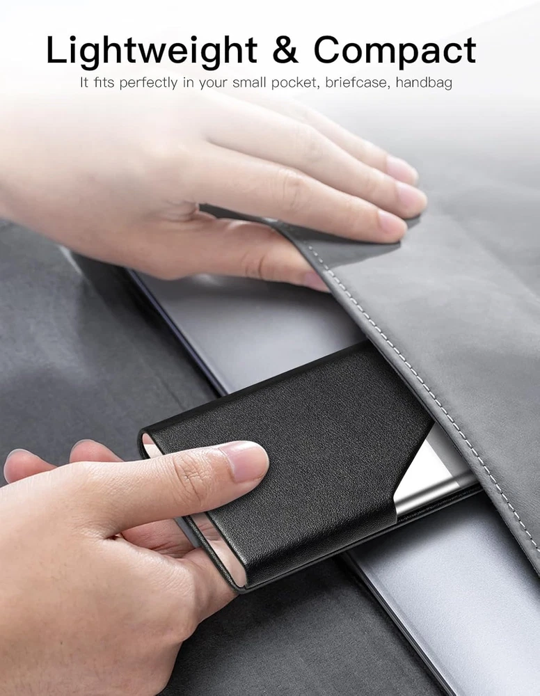 Store New Arrivals Add to Favorite View Feedback Contact Business Card Holder, Upgraded Leather Business Card Case Pocket Card Holders for Men or Women, Metal Slim Name Card Holder RFID Blocking Business Card Carrier with Magnetic Closure(Black) Description Item model number 007 Closure Magnetic Style Minimalist Number of Items 1 Color Black Pattern Solid Material Faux Leather Material Type Faux Leather Manufacturer Part Number 007 Item Weight 45 Grams Is Discontinued By Manufacturer No Product Dimensions 3.54 x 0.39 x 2.36 inches Quick Access: Built-in magnetic closure allows for quick and easy access to your cards. Premium Material: Crafted from high-quality microfiber leather and stainless steel, this business card case offers a unique and stylish look. Thin and Compact: Holds 15-25 business cards or 4-8 credit cards, depending on their thickness. RFID Blocking: RFID blocking technology safeguards your cards from unauthorized wireless communication. 【Widely Used】: Ideal for business cooperation, business sales, networking, and business trips, leaving a lasting impression. Minimalistic Enough: Slim and minimalistic design fits perfectly into your pocket, briefcase, or handbag. Product Description Padike Professional Business Card Holder Make a lasting impression with our elegantly designed Business Card Holder, crafted for the professionalism. Good for both seasoned executives and rising entrepreneurs, it showcases your business cards with sophistication. Premium Business Card Holder with RFID Protection and Magnetic Closure Our business card holder combines style and security with a powerful, invisible magnet for easy closing, premium leather, RFID-blocking technology, a soft flannel interior, and a sleek stainless steel body. It’s the ultimate accessory for protecting and presenting your cards with elegance. Elegant Fusion Our business cards combine sleek stainless steel with durable microfiber wear-resistant leather, offering a modern, premium feel. The stainless steel adds a touch of sophistication, while the leather ensures durability and a professional look. Ideal for making a lasting impression. Premium Level 10-Smoothness Leather Business Card Holder Our business card holder uses level 10-smoothness leather for enhanced durability and longevity, outlasting standard level 6-smoothness leather. This premium material ensures your holder remains sleek and functional for years, offering a superior and long-lasting accessory for your cards. Ultra Slim Our business card holder boasts an ultra-slim profile, measuring just 0.5 inches in thickness. This sleek design ensures it fits easily into pockets or bags, providing a streamlined and stylish way to carry your cards without bulk. 1 Poket-Friendly 2 High Quality Leather 3 FOR HIM Choose Your Shade Offered in a diverse range of colors, this ultra-slim business card holder allows you to choose a shade that perfectly matches your style or personality. Whether you prefer classic tones or vibrant hues, there’s a color option to fit every preference. ABOUT US We offer the best prices around on high quality products. Our E-store includes media such as books, movies, music and games while offering electronics, toys, sporting apparel, clothing, tools, general home, garden items and more. SHIPPING We are always working hard to ensure your package arrives as soon as possible. Please understand that some factors like weather, high postal traffic, and the performance of shipping companies are outside of our control. We offer free shipping to the lower 48 states and ship within 2 business days of payment, usually sooner. We do not accept P.O. Boxes. Please provide a physical address. RETURNS We offer a 30-Day Return Policy on items which you are not completely satisfied with. You have the option for a full-refund or an exchange of the item. No returns are available on items shipped outside of the USA. PAYMENT We accept PayPal. CONTACT US This page content is yet to come Please ad us to your favorite seller and visit again later Thank You CUSTOMER SATISFACTION We try our very best to make sure every customer is completely satisfied. If there's a problem, message us! We're happy to help.