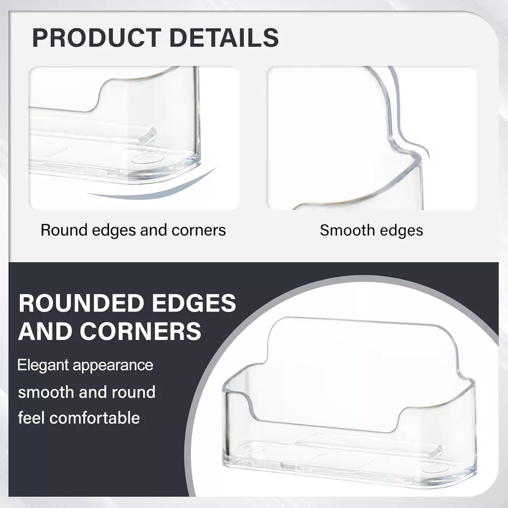 Store New Arrivals Add to Favorite View Feedback Contact Business Card Holder for Desk - 4 Pack Acrylic Business Card Holder Stand Display Plastic, Desktop Business Card Holders for Exhibition, Home & Office, Fits 30-50 Business Cards Description Unit Count 4 Count Batteries Required? No Finish Glossy Item Package Quantity 1 Part Number bchd-4 Color Clear Product Dimensions 3.8"L x 1.4"W x 1.97"H Material Acrylic Item Weight 0.11 Kilograms Manufacturer DMFLY Batteries Included? No Size 4 Pack Finish Type Glossy Brand DMFLY Number Of Pieces 4 Material: DMFLY Business Card Holder Desk made of high-quality acrylic material - Sturdy, more clear. Large Capacity: Our Business Card Holder Stand size: L3.8xW1.4xH1.97 inches, the single compartment can hold up to 30 - 50 business cards, depending on the card thickness. Why Choose Us? Our Acrylic Business Card Holder uses European and American Streamlined Design, which is more aesthetic and professional, compatible with more scenes, like office desk, company front desk, exhibition desk, conference desk, etc. Strong Support Feet: Compare to other similar items, Our business card holder desktop comes with strong support feet - More stable and durable, not easy to fall down. Safe Packaging and Multiple Packs: DMFLY Clear business card holder Packing - Each product is put into a separate plastic bag, and then put together into a customized size kraft carton, not easy damage the product. Multiple Packs - can be used by yourself, or send to friends, family, and colleagues are all good choices. As a boss, this is also a good gift for employees. Product Description DMFLY Acrylic Business Card Holder is your desk's nice decoration. DMFLY Acrylic Business Card Holder New design appearance Our advantage: 1, Uses European and American Streamlined Design - Make a great first impression on customers 2, Large Capacity - hold up to 30 - 50 business cards, depending on the card thickness. 3, Wide Use - office desk, company front desk, exhibition desk, conference desk, etc. 4, Premium Material - high-quality thicker acrylic - Clear 5, Rounded corner design is more beautiful Product specifications Capacity: 30-50 cards Size: L3.8'' x W1.4'' x H1.9'' Material: Acrylic Model: Arc design Function: Display cards Color: Clear Package: Multiple Pack Can be as: Business gifts ABOUT US We offer the best prices around on high quality products. Our E-store includes media such as books, movies, music and games while offering electronics, toys, sporting apparel, clothing, tools, general home, garden items and more. SHIPPING We are always working hard to ensure your package arrives as soon as possible. Please understand that some factors like weather, high postal traffic, and the performance of shipping companies are outside of our control. We offer free shipping to the lower 48 states and ship within 2 business days of payment, usually sooner. We do not accept P.O. Boxes. Please provide a physical address. RETURNS We offer a 30-Day Return Policy on items which you are not completely satisfied with. You have the option for a full-refund or an exchange of the item. No returns are available on items shipped outside of the USA. PAYMENT We accept PayPal. CONTACT US This page content is yet to come Please ad us to your favorite seller and visit again later Thank You CUSTOMER SATISFACTION We try our very best to make sure every customer is completely satisfied. If there's a problem, message us! We're happy to help.