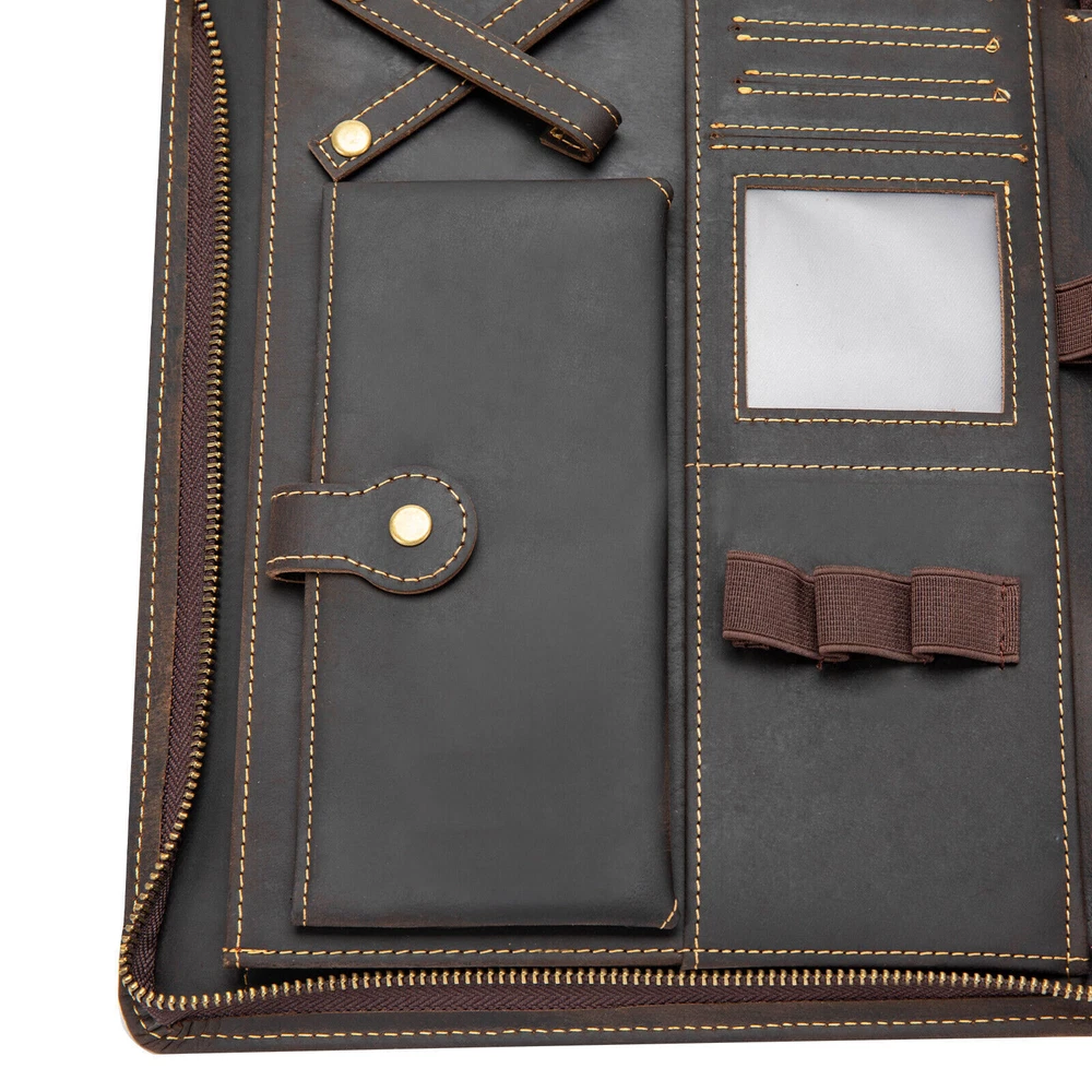 Specification Style: Modern Color: Brown Material: Cowhide Leather, Alloy, Plastic Cement Shape: Rectangular Compatible Devices: 24cm/9.7inch Tablets/Laptops Net Weight: 0.67kg/1.4lbs Gross Weight: 0.8kg/1.7lbs Package Size: 31*25*4cm/12*9*1.5inch Product Size: 29.5*23*4cm/11.41*0.87*1.57inch Package Included 1* Leather Padfolio Folder Business Top-layer Leather Portfolio Zippered Notebook Binder Office Organizer Description Meetings, interviews, or classroom presentations require a lot of preparation, so we need a practical bag to organize objects. This product provides you with a great choice. Made of top-layer cowhide leather, it is very durable. And multiple compartments can facilitate the classified storage of office files, mobile phones, pens, data cables, and more. It not only makes you more confident but also gives others a good impression. Key Features Preferred Material: Made of top-layer cowhide leather, it has high toughness, good air permeability, and is comfortable to touch, allowing you to use it for a long time. Due to the natural property of leather, the appearance may change to a more mature and aged look.This aging of the leather not only makes it more flexible but also strengthens the material. You can slowly enjoy the change of texture! A Good Assistant: It can organize letters, notebooks, important documents, paper, printouts, flyers, commercial credit cards, photos, etc, and protect precious electronic products from collisions and scratches. Sorted Storage: A tablet holder with four elastic bands can accommodate 9.7-inch tablets/laptops and provide excellent fixation. Two large pockets can be used to store receipts, checkbooks, tickets, or passports. Four highly elastic pen slots can accommodate various sizes of pens, pencils, and markers. A phone bag with a buckle can be used to store your phone. The headphone holder can be used to store headphones, USB cables, and charging cables. And four card holders can store your business cards, ID cards, or credit cards. High-end Appearance: The natural texture of leather, classic brown, metal zippers, and rounded edges make the product look simple but luxurious, which can showcase your extraordinary fashion taste. Portable: It is lightweight (1.4 lbs), compact ( 11.41*0.87*1.57 inches ), and can be conveniently placed in a suitcase or briefcase, making it an excellent companion for business travel. It can also serve as a substitute for a briefcase, laptop bag, and backpack. Ideal Gift Choice: Good practicality makes it an ideal gift for colleagues, friends, or recent college graduates on Father's Day, Mother's Day, birthdays, Valentine's Day, Christmas, and other occasions. Exquisite Workmanship: Fine and neat stitching can make the product look more exquisite and extend its service life. Guaranteed Customer Service: We aim to provide quality products and services. If you have problems, please feel free to contact us. We will reply and solve the problem for you as soon as possible. Details Durable Zippers: The high-quality alloy zippers are wear-resistant, corrosion-resistant, waterproof , and can resist impact, deformation, and fracture, which can extend the service life of the product. And you can zip up the product to prevent losing items. Clear Card Window: The clear card window made of plastic cement allows you to easily see the cards inside for easy access. Application It is suitable for students or professionals to store office supplies for presentations, meetings, interviews, or daily management tasks. Specification Style Modern Color Brown Material Cowhide Leather, Alloy, Plastic Cement Shape Rectangular Compatible Devices 24cm/9.7inch Tablets/Laptops Net Weight 0.67kg/1.4lbs Gross Weight 0.8kg/1.7lbs Package Size 31*25*4cm/12*9*1.5inch Product Size 29.5*23*4cm/11.41*0.87*1.57inch Package Included 1* Leather Padfolio Folder Notes Please avoid immersing the product in water or exposing it to water for extended periods. Please avoid using sharp objects to rub the product. The top-layer cowhide has a natural texture and is prone to wrinkles, marks, spots, and creases, which is a normal phenomenon. You can repeatedly rub with your fingers, and use a dry cloth, sponge, hand cream, or leather care oil to make scratches fade or disappear. Please confirm the size of the tablet or laptop before ordering. If unsure, please measure it in time. Please allow the slight color difference caused by the shooting light and 1-3cm error due to manual measurement, and make sure you do not mind before ordering. Payment Delivery details Terms of sales About us Contact us Payment We accept ebay payment 。 Fees such as import duties, taxes are not included in the item price or shipping costs. These charges are the buyer's responsibility. Delivery details Shipping: 2-9 working days to: USA Terms of sales We maintain high standards of excellence and strive for hundred percent customer satisfaction. Feedback is very important to us. We hope that you contact us immediately before you give neutral or negative feedback, so that we can address your concerns. It is impossible to address issues if we do not know about them! About us Your satis faction is our ultimate goal. We work hard to earn your trust and future business. Our certified technicians have tested each item before shipping. The unit comes with 1 year limited warranty on all manufacturing defects. a) If you receive a defective item, you may return it or ask for a discount. Please contact us within 14 days after you receive the package. b) What you returned must be intact and in its original packaging as re? u. Customer is responsible for shipping costs of the returned item. c) We will cover the cost of shipping back t with the shipping rate indicated in the registration page. We will send you a new unit or refund the full payment you paid. Thank you. Contact us Business Hour Business Hour: Monday To Friday: 8:30 AM to 5:00 PM (Beijing China time) Due to time zones, our reply to your 