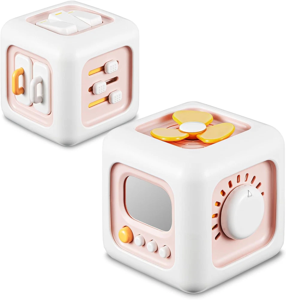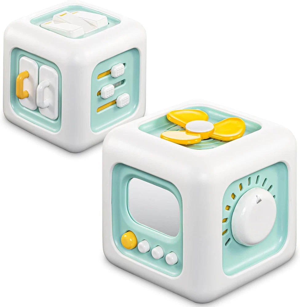 【6-in-1 Cognitive Toy】This interactive busy cube features six learning activities. Well made montessori toys for 1 year old boy 【Develop Skills】This activity cube strengthens parent-child bonds and enhances skills like hand-eye coordination, problem-solving, and concentration. It's designed with sensory learning in mind, inspired by montessori principles, supports focus and sensory development 【Compact and Travel-Friendly】With dimensions of 3.35 x 3.35 x 3.35 inches, this sensory busy toy is robust and impact-resistant, incredibly convenient for road trips and airplane travel. This brain-boosting activity game will keep your kids engaged and entertained for hours on the go 【Well Made with Quality Care】Our sensory cube is crafted from non-toxic, BPA-free materials with sanded edges to ensure your child's safety during hours of engaging play. Please note: Keep it clean by wiping with mild detergent and a damp cloth, and avoid prolonged exposure to direct sunlight 【Gift-Worthy Choice】The lightweighted and portable Busy Cube toy is a versatile gift choice. It's great for newborns, birthdays, Christmas, Thanksgiving, Easter, travel, and as a teaching aid. This makes it a great toddler travel companion and one of the best gifts for both little boys and girls Product Description The video showcases the product in use. The video guides you through product setup. The video compares multiple products. The video shows the product being unpacked.