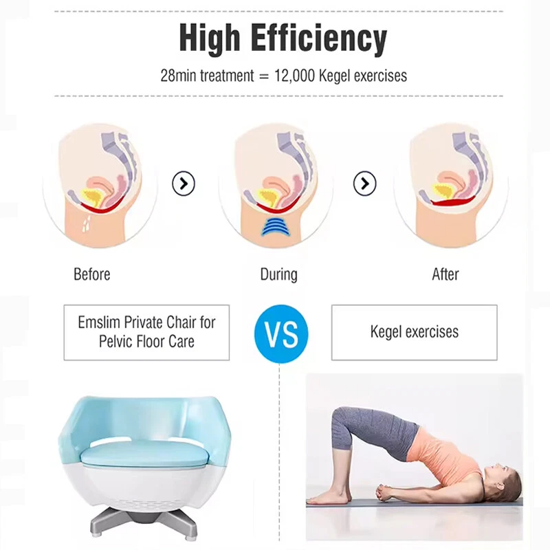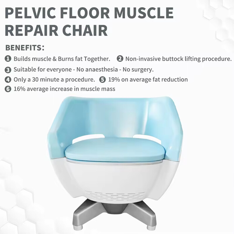 Advantages of happiness chair 1.Strengthen pubococcidial muscle (PC muscle) 2.Prevention and treatment of stress urinary incontinence 3.Improve the sensitivity and function of sex 4.Restore vaginal muscle tension and improve vaginal health 5.Promote postpartum recovery 6.Increase vaginal wall thickness and lubrication after menopause 7.Increase the blood flow and nerve function of the basin Technology This product uses electromagnetic energy focused pulse technology, the whole treatment is safe and non-invasive, During the treatment, energy can penetrate deeply into the pelvic floor muscles and stimulate the entire pelvic floor area. One treatment is equivalent to 12,000 pelvic floor muscle contractions, which can strengthen the basin muscles, avoid urine leakage, and enhance sexual sensitivity.The technology emits focused electromagnetic energy that induces supramaximal muscular contractions in the pelvic floor region. This deep muscle stimulation offers benefits over Kegel exercises. The procedure for the treatment of urinary incontinence in women. INSTRUMENT PROJECT(male) 1.Regain control of the body 2.Strengthen pelvic floor muscles. 3.Improve the overall ability. 4.Increase the frequency of urination. 5.Avoid urinary incontinence after aging. 6.Improve urine drop. INSTRUMENT PROJECT(female) Regain control of the body Strengthen pelvic floor muscle and control of defecation and defecation. Improve the bladder, uterus or intestinal prolapse caused by pelvic floor muscle relaxation. Reduce urine leakage caused by coughing, sneezing or jumping. Improve muscle tone( especially before feeding) and prevent postpartum stress urinary incontinence. Tighten the vagina and improve sexual satisfaction. Package include: 1* Main Machine
