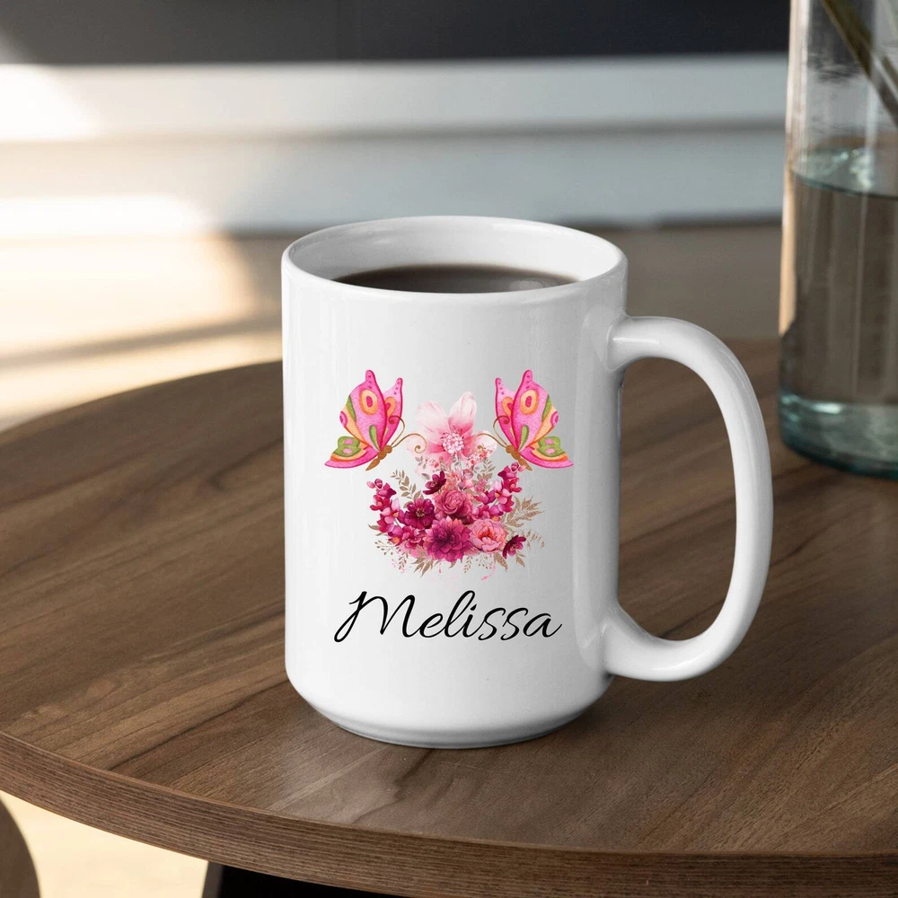 Butterfly Mug Pink Butterfly Coffee Mug Butterfly Gifts For Women Unique Personalized Butterfly Coffee Cup With Name Butterflies Gift Product Details.. This high quality 11oz. ceramic white mug has a premium hard coat that provides crisp and vibrant color reproduction sure to last for years. Perfect for all hot & cold beverages. The highest quality printing possible is used. It will never fade no matter how many times you wash it. Material: 100% Ceramic. Print both sides. Dishwasher and Microwave Safe. High Gloss + Premium White Finish. Printed in the U.S.A. Personalized & Custom. We support personalized and custom mug to add custom, when placing an order, you can add notes to the "order note" in shipping address section. Also you can contact us directly via message. Shipping Info. Ready to ship in 1 to 2 business days, All products are made-to-order and proudly printed in the United States. Shipped by USPS and DHL, You will receive your order in 5-7 days. Replace & Refund. All products are defective during shipping broken, chipped will be replaced free of charge. You are not satisfied with the product, we will refund 100% money to you. If any other issues arise, please do not hesitate to message, we would be more than happy to assist you.