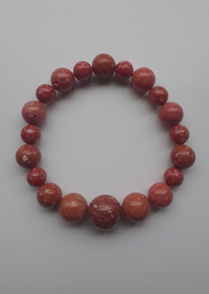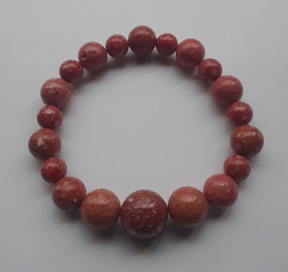 NEW BRACELET CLAY COLOR MIXED STONE BEADS GRADUATING SIZE BEADS ARE 8MM, 10MM, 12MM 14MM BEAD AT CENTER AVERAGE SIZE, STRETCH BRACELET FREE SHIPPING THANKS MANY OTHER GREAT JEWELRY ITEMS LISTED
