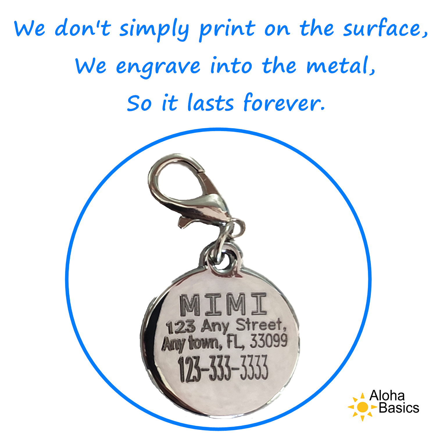 HOLIDAY SEASON SHIPPING INSTRUCTION As per usual, for better saving for our customers, we mail USPS envelope. As holiday season is coming, there will be chances that USPS being busy and slow . We expect 0-2 days of ha nd ling time and UP TO 2 WEEKS of delivery time. (Most customers receive their items within a week) Please purchase if delivery time works for you. Please contact us if you don't receive your item after 2 weeks of it being mailed out. We will take good care of you. :))) Please READ the instructions before you order. ♥ PROMOTION: Buy 4 get 1 free. Add 5 to your cart and you'll only see the price of 4. :)) ____________________________________________________________________________ MATERIAL : Zinc Alloy - Hard, Durable, Rust Protected ____________________________________________________________________________ FEATURES: Size: Round shape - Diameter 1.1 inch = 2.8 cm Weight: 0.3 oz - Will be a little bit heavy for tiny little dogs Please check the picture of the tag, that will give you a general idea. :) ____________________________________________________________________________ Engraving : Engraving: On the back side, Please leave us a note about your requirements For example: Dog's name Address Phone Number (up to 4 rows) Thank you very much ____________________________________________________________________________ PACKAGING & MAILING For better saving, we mail by USPS first class mail ( envelope). Please be looking out for the envelope. Any purchase with more than 4 tags, we mail by USPS first class package. For U.S Customers, it normally takes 4-9 business days for the tags to be delivered. For Canadian Customers, it normally takes 1-3 weeks for the tags to be delivered. ____________________________________________________________________________ CUSTOMER SERVICE Because of the pandemic, we started this family business. :) We provide 5 stars customer service - we are here to help. Each tag has been made and picked by us, there may be mistakes, but we are very happy to fix them for you. Your review matters to us, if there is any issue, please CONTACT US FIRST before you leave a review. :)))) We will take good care of your order and we appreciate your understanding and supporting. Please let us know if you have any questions or concerns :) We'll try our best to make the tags personalized for your pets!