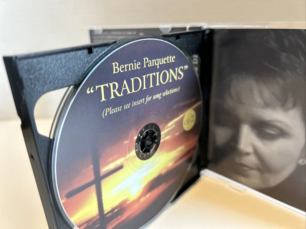 This amazing 2 disc set CD titled "Traditions" by Bernie Parquette is a rare find for any collector of religious and devotional music. The CD is presented in a standard jewel case and features multicolor artwork. The music is in English and is graded as Very Good (VG). This CD is a must-have for any fan of gospel music and is a great addition to your music collection. It is signed “Love Bernie”. It may or may not be authentic.