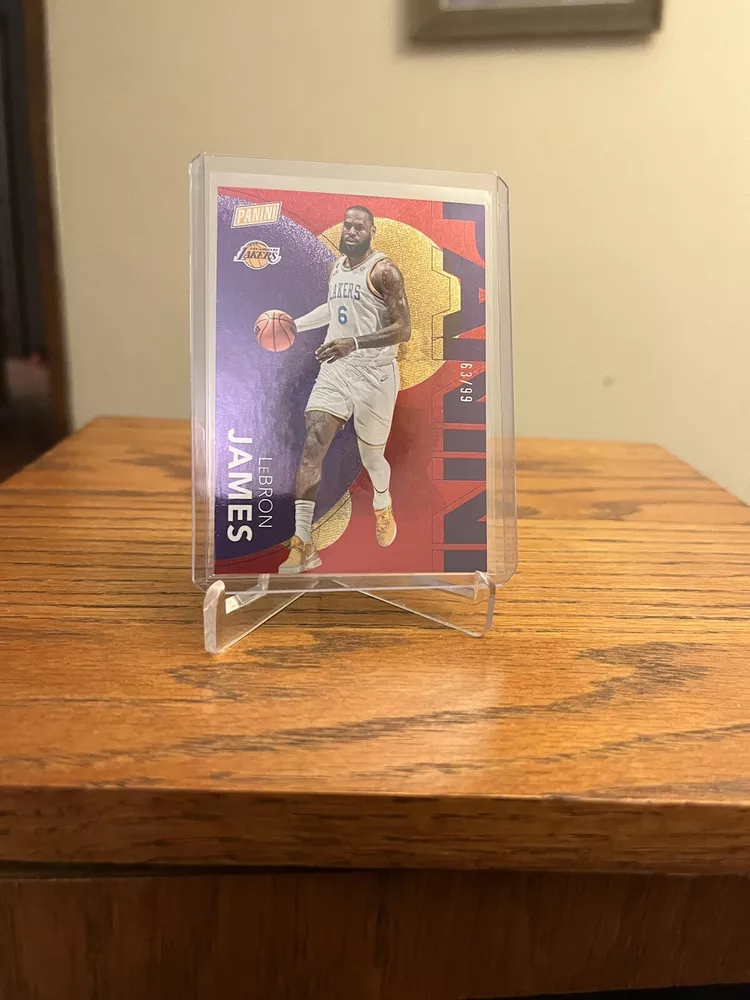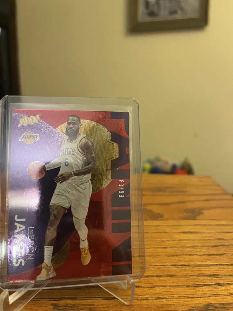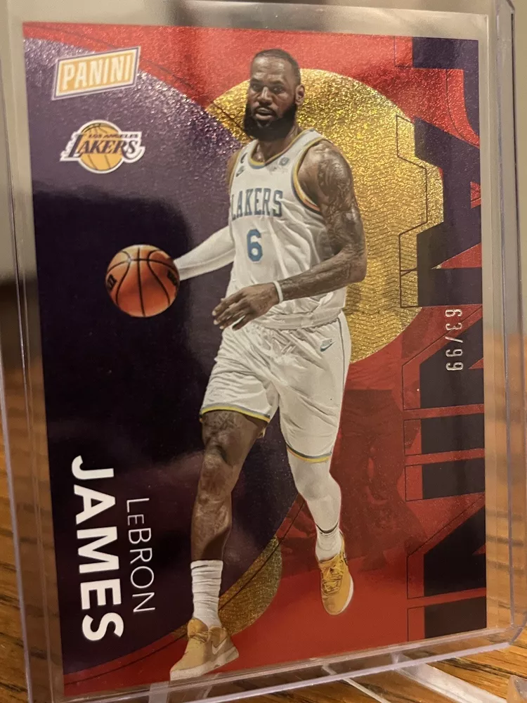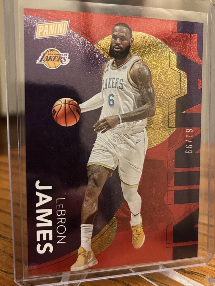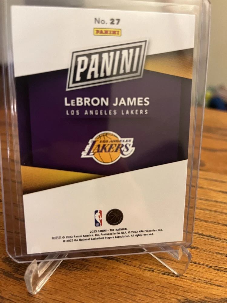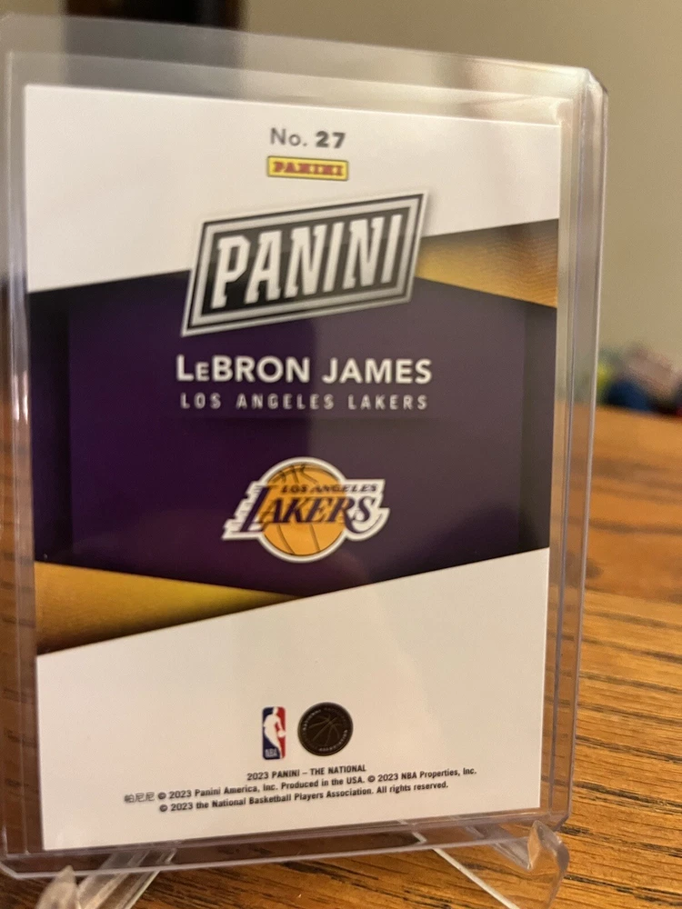 Own a rare 2023 Panini The National trading card featuring NBA superstar LeBron James, with a print run of only 99. This red/gold parallel variety card. This card is a must-have for any basketball collector and fan. The card number is 27 and it is not autographed. It was manufactured by Panini in 2023 and is part of the Cleveland Cavaliers, Miami Heat, and Los Angeles Lakers team set. Add this valuable sports trading card to your collection today!