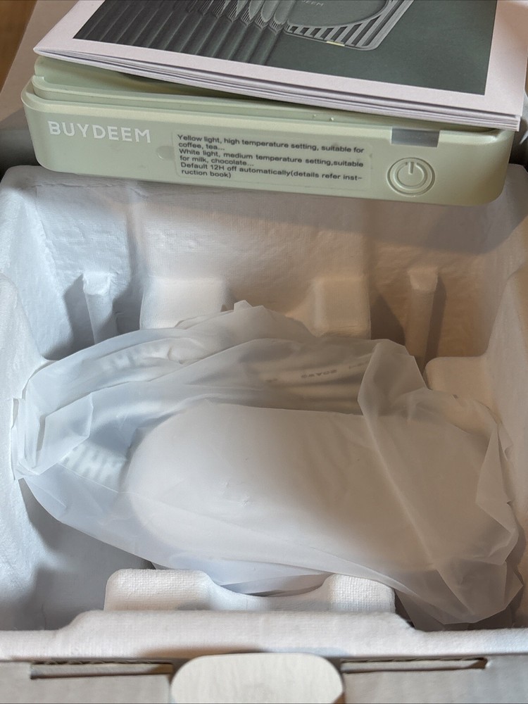 Brand new in box. Ultra-Wide Heating Area - Measuring 0.14 ft2, the EXTRA-WIDE heating area fits any cup size, allows you to use all your favorite cups. Easy to Operate - 2 TEMP SETTINGS fit your warming needs. With a ONE-TOUCH BUTTON & SMART INDICATOR DESIGN, lets you easily see the temperature status: 113 ℉ (White) & 131 ℉ (Yellow). Keeps Drinks Warm Longer - This mug warmer offers 12 Hour AUTO SHUT-OFF design, keep your beverage PLEASANTLY WARM and within the optimal range for drinking. Safety & Durable - Special BPA-free silicone pad protects your hands from being burnt. The 4 silicone non-skid feet support your mug warmer steadily. The water-proof design makes cleaning easy and safe, ensuring the SAFETY of our product. Travel Friendly - Dual voltage with ultralight-weight design, perfect for worldwide use, ideal to carry it with you, enjoy a cup of warmth ONE THE GO. Tips - Please try to use Flat and Thin-walled bottom cups for the best result. Suitable for tableware, stainless steel cup, a ceramic mug, milk box, glass cup etc.(Covering a lid also helps to keep the drink warm.) From a smoke-free home. Box X1