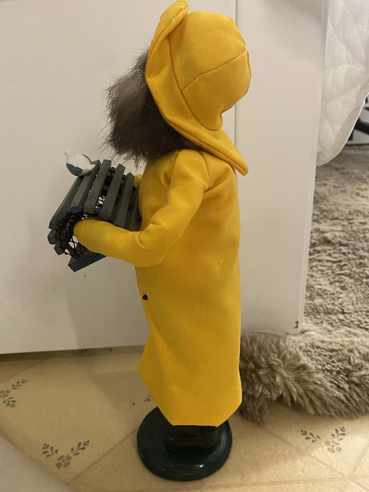 This Byers Choice doll is a charming addition to any collection. The 1999 Nautical Carolers Lobster Fisherman doll features a yellow lobster trap and a seagull, perfect for all occasions. Handmade with mixed materials, this doll was manufactured in the United States and is a unique piece from the 1990-1999 time period. The brand, Byers Choice, is well-known for their quality collectibles and this doll is no exception. Add it to your holiday or seasonal collection today.