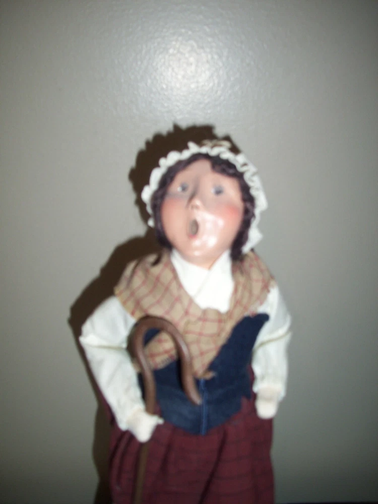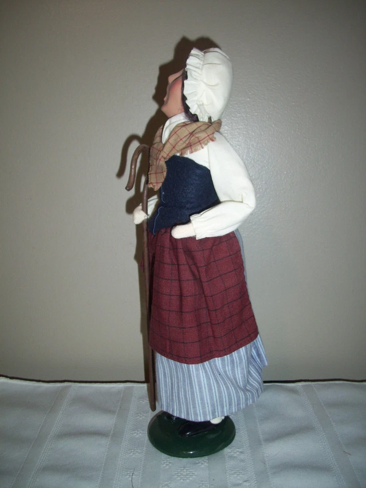 Evoke the spirit of colonial Christmas with the Byers' Choice Carolers Williamsburg Woman Shepherdess. This handcrafted figurine, part of the renowned Williamsburg Collection, showcases exquisite attention to detail, with an all-over multicolor design that captures the festive essence of the season. Standing at a stately 13 1/2", the piece is a large and vibrant addition to any holiday display. Crafted from a mix of materials with a multi-finish, this authentic 2005 creation reflects a timeless colonial style, perfect for those who cherish the traditions and artistry of Christmas past. Proudly made in the United States, it's a singular piece that brings a touch of the historic Williamsburg spirit to your home. SEE MY OTHER BYERS CHOICE FIRGURES I HAVE LISTED.