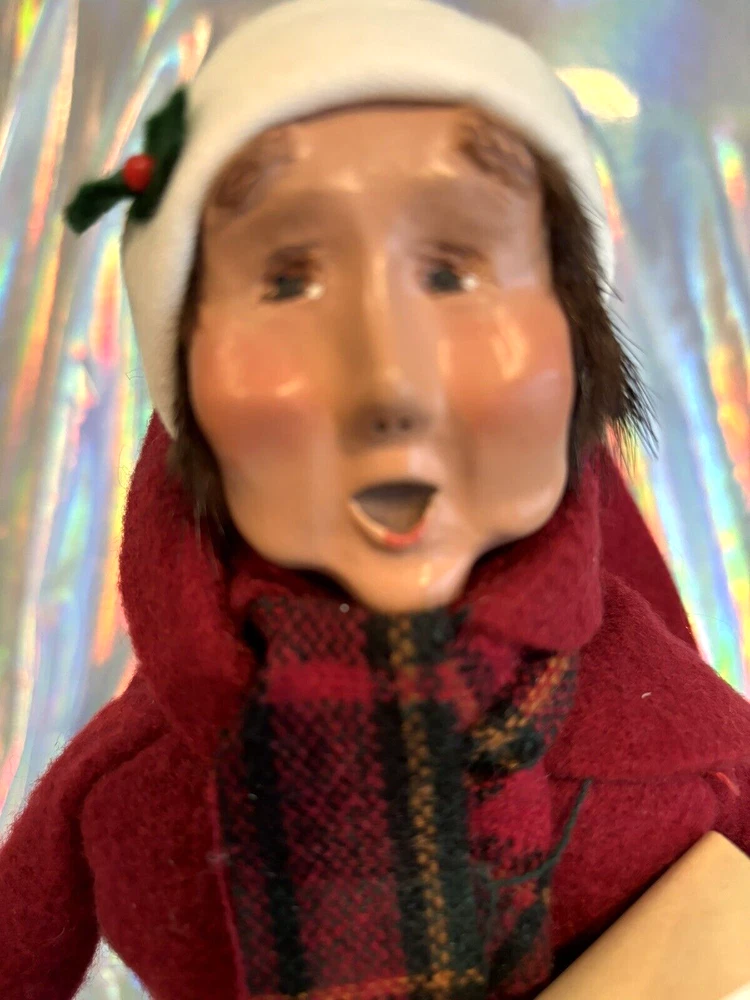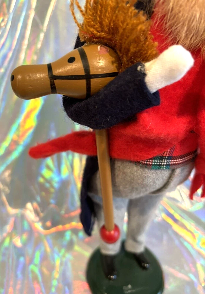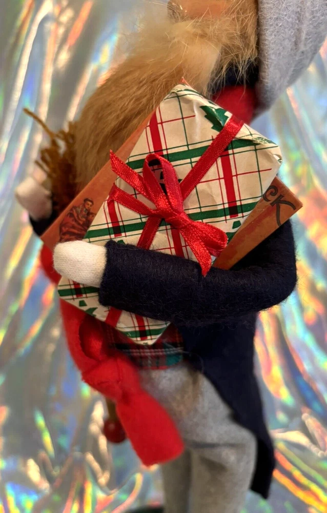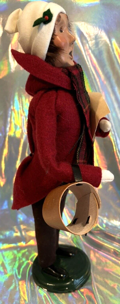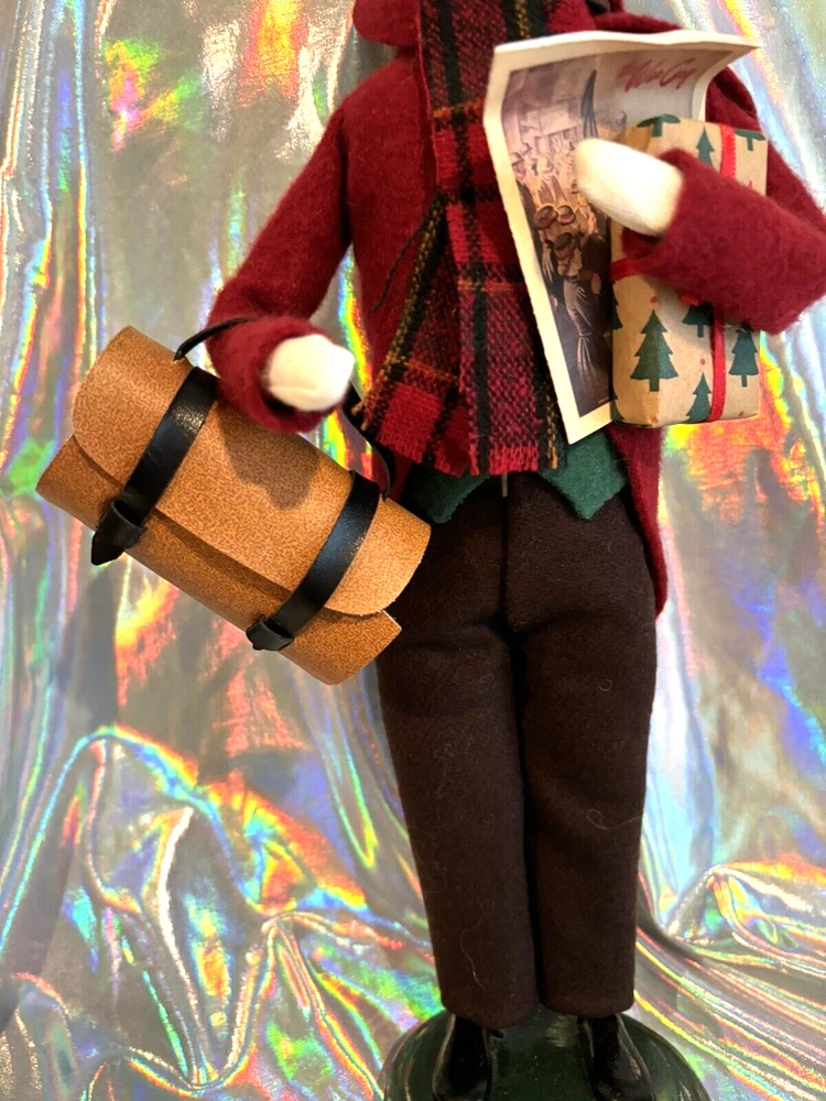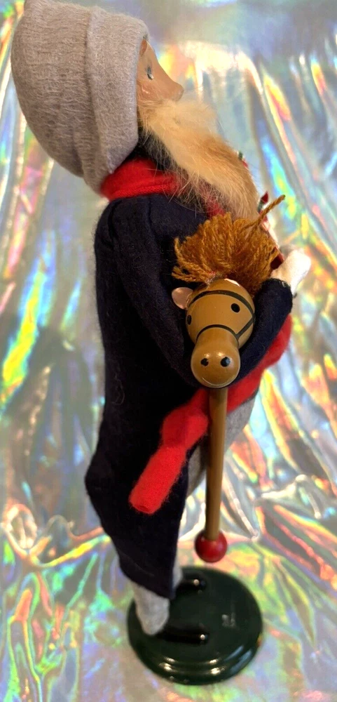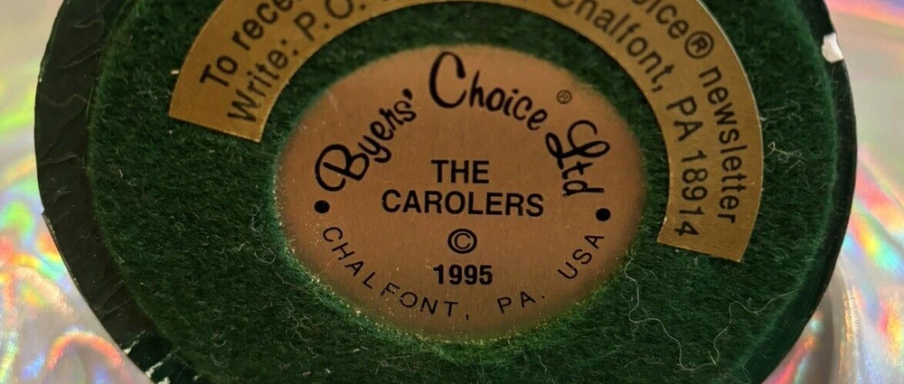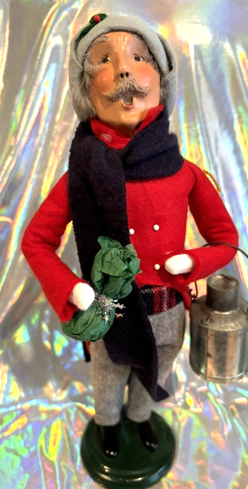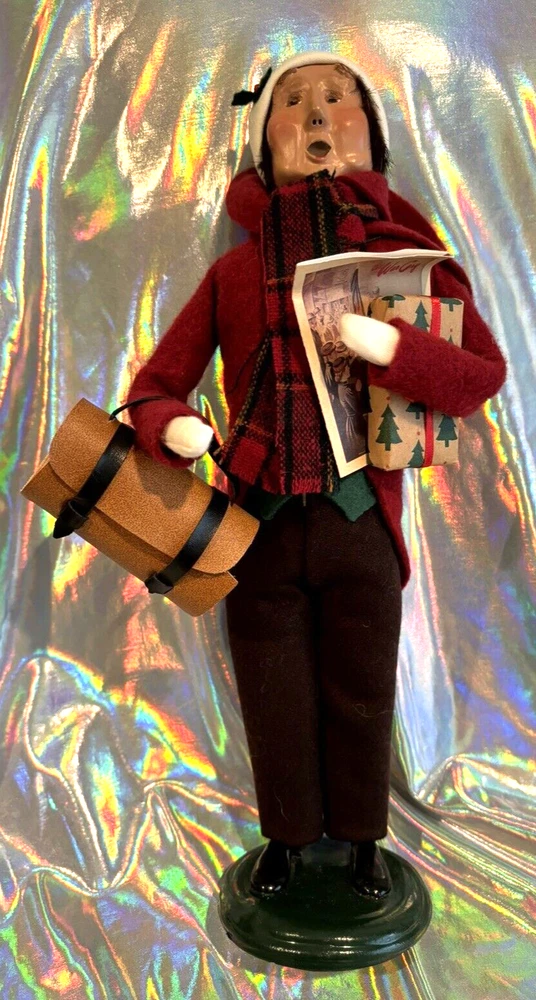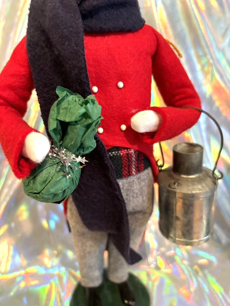 This beautiful Byers' Choice figurine lot features three Victorian men with gifts. From the Carolers collection. The intricate details and original design make this a perfect addition to any Christmas decor or collection. The figurines are perfect for collectors or as a special holiday gift. Tallest is 13.5" high. Made in the U.S.A. Good previously owned condition. Man with hobby horse made in 1995, man with plaid scarf is the "Traditional Shopper", man with milk can is the "Traditional Grandparent".