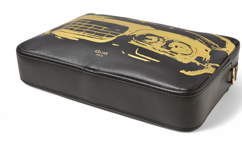 This Celine clutch pouch is absolutely stunning! The Mustang print in black and gold gives it a bold, luxurious look, while the genuine leather feels soft and durable. The perfect size at 20.5x14cm—fits essentials without being bulky. Love the detachable strap for versatile styling, and the fastener closure keeps everything secure. Made in Italy withsuperbesome craftsmanship, it’s a statement piece that elevates any outfit. Whether for a night