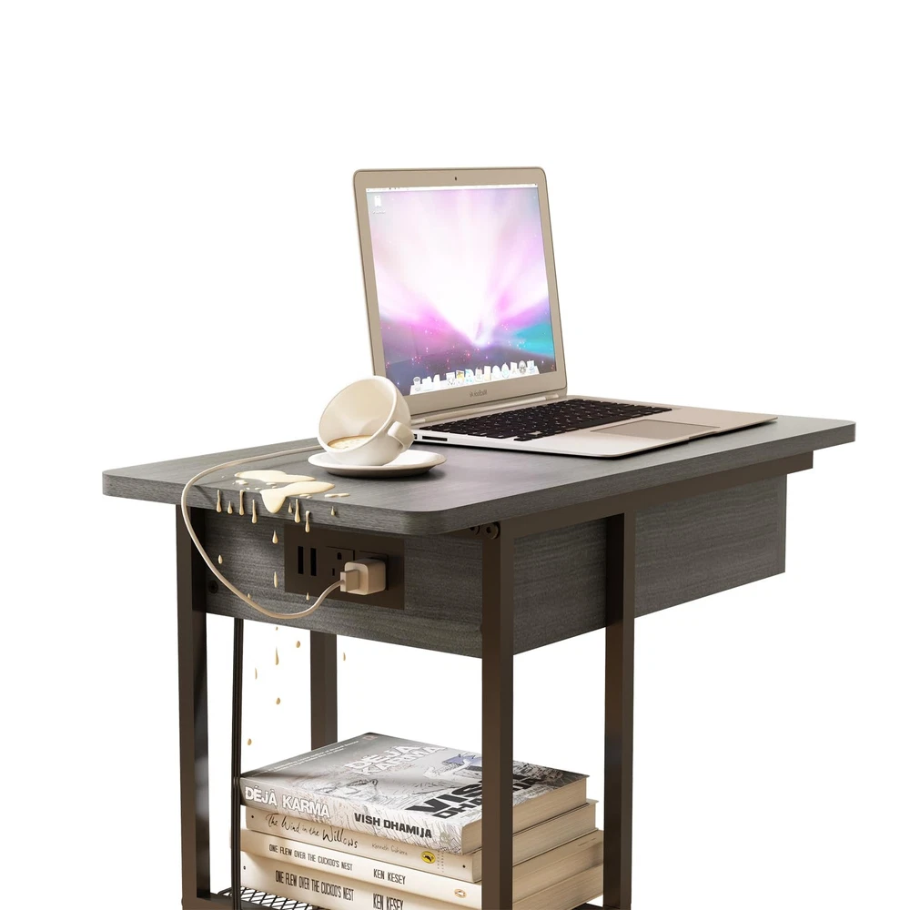 C Shaped End Table with Charging Station Patented Design: Uniquely Designed C Shaped Side Table with Charging Station, a Flip Top Drawer and 2 Tiers Storage Basket Shelf, small side table offers you ample space to storage, meets your charging needs when using electronic devices, within your arm's reach. Upgraded Version - The Charging Station is Designed on Your Left Vertical Side, which is safer to use. You don’t have to worry about electric shock caused by spilled coffee, water, etc. With 2 x USB Ports & 2 x 3-Prong Power Outlets - Low Battery Where is Power Outlet? No need to look around it’s within your arm’s reach. Also, the electrical cord is 6.5 ft long, enough to keep you away from wall corner where the home power outlet located. Thanks to the C-shaped Design, this C shaped sofa table can easily hug the side of your sofa or chair, you can also tuck it under your bed for more convenient use. NOTE: The height from the bottom of the wheel to the top of the base is 2.9”. The Attention to User Safety in Every Design Detail - First, the charging station is designed on the left vertical side instead of tabletop, keeping it away from spilled water. Secondly, the four corners of the tabletop are designed to be round so as not to hurt people. Multi-functional C-Shaped Table - Can be used as a side table, end table, bedside table, sofa table, nightstand, charging table, living room end tables, or bed tables adjustable over the bed. It is not only a C table, but also a side table with storage space, hidden drawer space with 2 shelves, the combination of privacy and open storage makes it more convenient for you to work from home, ideal for small spaces.