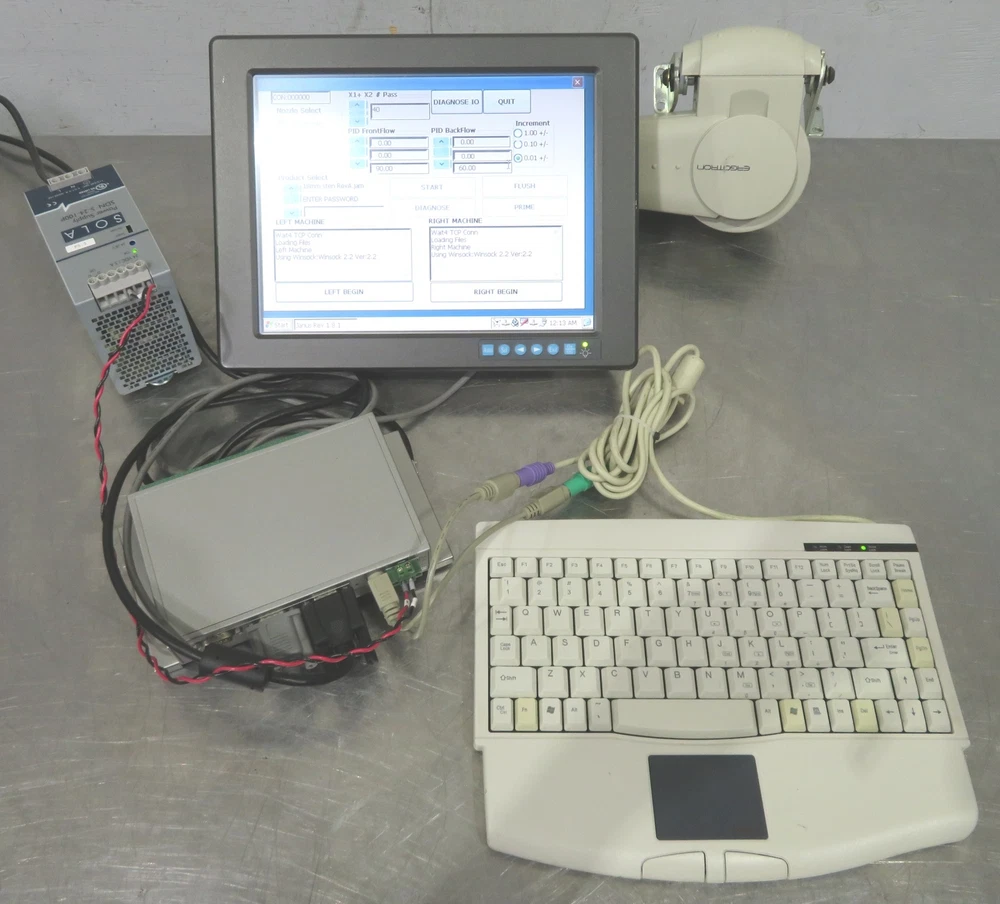 This lot includes an Advantech UNO-2050CE-GDA1 Embedded Computer (with 64MB SRAM) and FPM-3120G-RAE Touch Panel Monitor, along with a DC Power Supply, a Combo Keyboard/Mouse, and some interconnect Cables, as shown. These items look to be in good cosmetic condition, showing some signs of wear. They power up, as shown. However, this is the extent of my testing of these items, and they are being sold as-is. Approximate overall unpacked dimensions: 20"L x 12"W x 8"H. Please ask questions or indicate concerns prior to bidding. By placing a bid, you agree to all stated terms. All auctions are sold as advertised, as is and without warranty, unless otherwise stated in the item description. No software, power cords, or other accessories are included unless stated above. See additional terms of the auction below. Shipping Buyer pays a calculated shipping fee plus a $20 handling fee (for DOMESTIC shipments only - 48 contiguous states excluding Puerto Rico, Hawaii and Alaska). All international shipments (including Puerto Rico, Hawaii and Alaska residents) will be quoted based on winning bidders shipping address. The unpacked weight of this item is 21 pounds Orders will ship 1-2 business days (excludes weekends and holidays) after receipt of confirmed/verified PayPal payments. We do not process orders nor ship on weekends or holidays. Auction Terms Upon end of auction, the winning bidder should proceed to "CheckOut" and will be redirected to our Auction Checkout Page. WE DO NOT TAKE CREDIT CARDS (except through PayPal). All auctioned products are sold as advertised, as is and without warranty. Questions should be asked prior to bidding as all sales are final PAYMENT TERMS ARE PREPAID ONLY. Payments ALL AUCTIONS ARE PREPAID ONLY. We accept PayPal payments that are US and Canada Verified with ship-to US and Canada confirmed addresses only. We accept credit card payments through confirmed/verified PayPal accounts only. California Sales Tax For all California ship-to locations within Santa Clara County, local sales tax applies. For all California ship-to locations out of Santa Clara County, the current basic state tax rate applies. Orders will be placed on hold for non-payment of taxes. The following disclaimer only applies to items that are listed under the "Healthcare, Lab & Dental" category and all of it's sub-categories: "The sale of this item may be subject to regulation by the U.S. Food and Drug Administration and state and local regulatory agencies. If so, please do not bid on this item unless you are an authorized purchaser. If the item is subject to FDA regulation, I will verify your status as an authorized purchaser of this item before shipping of the item." Outback Equipment Company Gilroy, California. 95020 (408) 886-3700 Listing and template services provided by inkFrog