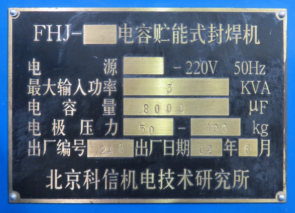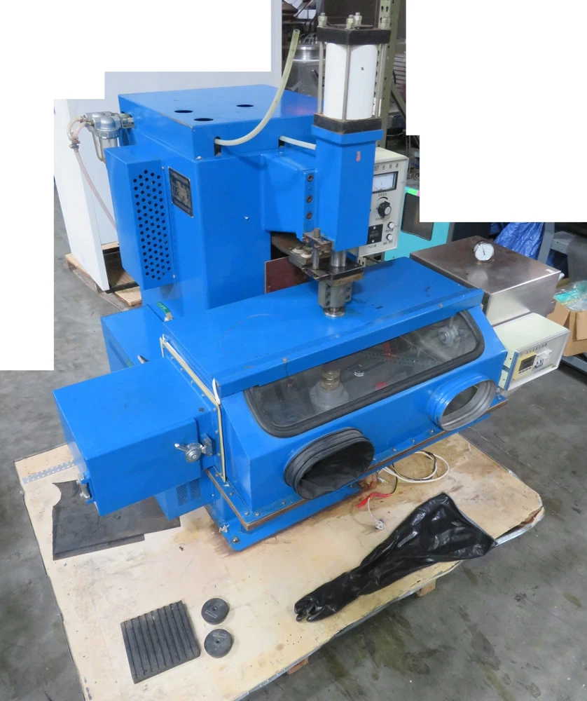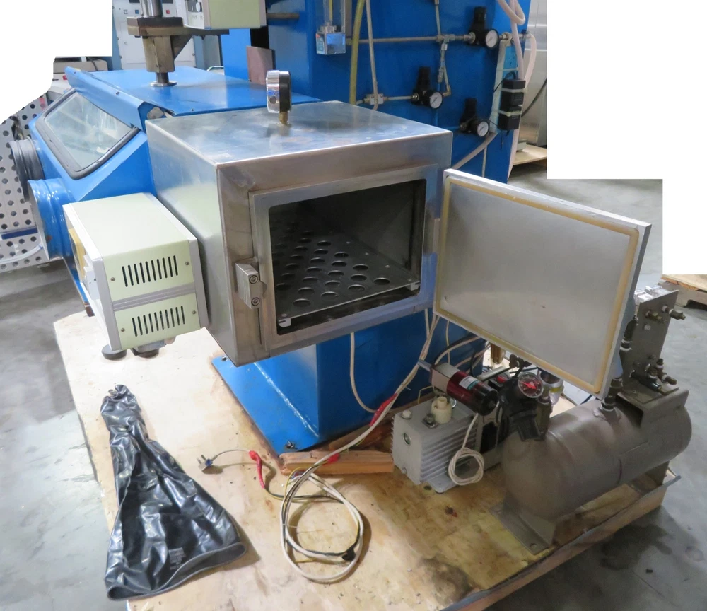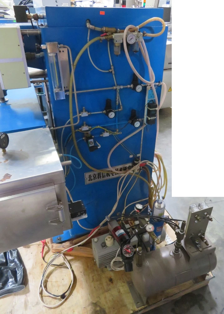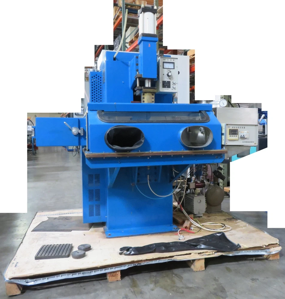 This machine appears to be Vacuum Sealing/Welding Machine/Glove Box, but the nameplate is in Chinese, and gives very little information, other than "FHJ," and 220V, 50Hz, 3kVA, 8000uF, 50-400kg, It looks to be in good cosmetic condition, showing some signs of wear. It comes with a Vacuum Pump and Air Compressor Tank, as shown. I have not attempted to hook this machine up to power, so it is being sold untested, and as-is. Approximate overall unpacked dimensions: 54"L x 70"L x 70"H. Please ask questions or indicate concerns prior to bidding. By placing a bid, you agree to all stated terms. All auctions are sold as advertised, as is and without warranty, unless otherwise stated in the item description. No software, power cords, or other accessories are included unless stated above. See additional terms of the auction below. Shipping LTL Freight The unpacked weight of this item is pounds. Buyer pays freight plus a fixed handling fee of $75.00 dollars (for DOMESTIC shipments only - 48 contiguous states excluding Puerto Rico, Hawaii and Alaska). Freight charges are prepaid and will be billed based on the buyers confirmed shipping address. To avoid invoicing delays on freight items, winning bidders should contact us through eBay with their confirmed ship to address and details on the following: Company Name: Contact Person: Contact Phone Number: Ship to Address, City, State and Zip Code: Country: Business or Residential Delivery? Is there a Dock or Forklift available? Delivery Hours: Lift-gate Delivery required? Are there any delivery restrictions? Are we delivering to a University, Strip Mall or Inside Delivery? Freight quotes and charges will be billed within 3-5 business days of receipt of shipping details above (please note international freight quotes may take longer). Freight rate quotes are valid for 10 calendar days from the date quoted. If a cleared payment has not been received in this time frame, the rate will expire. We reserve the right to re-quote the freight charges in the event of a payment delay. Auction Terms Upon end of auction, the winning bidder should proceed to "CheckOut" and will be redirected to our Auction Checkout Page. WE DO NOT TAKE CREDIT CARDS (except through PayPal). All auctioned products are sold as advertised, as is and without warranty. Questions should be asked prior to bidding as all sales are final PAYMENT TERMS ARE PREPAID ONLY. Payments ALL AUCTIONS ARE PREPAID ONLY. We accept PayPal payments that are US and Canada Verified with ship-to US and Canada confirmed addresses only. We accept credit card payments through confirmed/verified PayPal accounts only. California Sales Tax For all California ship-to locations within Santa Clara County, local sales tax applies. For all California ship-to locations out of Santa Clara County, the current basic state tax rate applies. Orders will be placed on hold for non-payment of taxes. The following disclaimer only applies to items that are listed under the "Healthcare, Lab & Dental" category and all of it's sub-categories: "The sale of this item may be subject to regulation by the U.S. Food and Drug Administration and state and local regulatory agencies. If so, please do not bid on this item unless you are an authorized purchaser. If the item is subject to FDA regulation, I will verify your status as an authorized purchaser of this item before shipping of the item." Outback Equipment Company Gilroy, California. 95020 (408)886-3700 Listing and template services provided by inkFrog