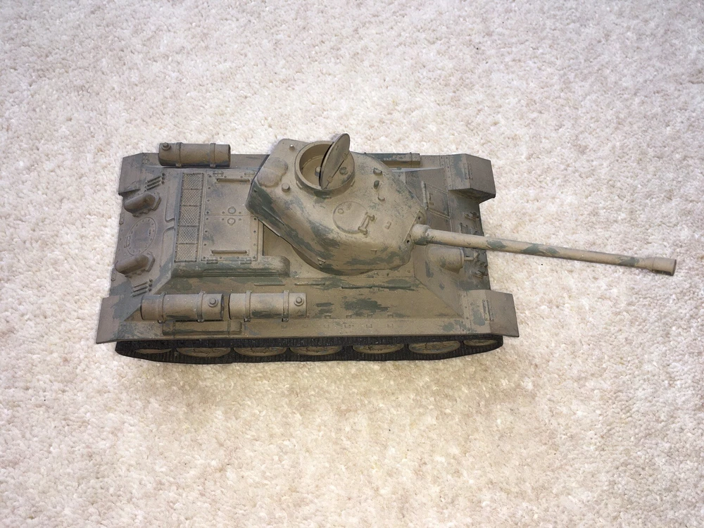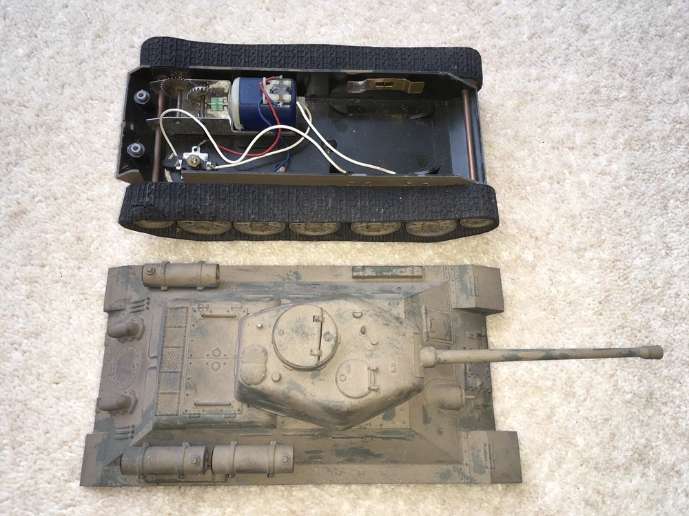This is a c1960s vintage quality TAMIYA made model of a WW2 tank.It is in a very good condition but is sold as unworking as it hasn’t been tested.Its overall measurements are 22cm long inc barrel x 9cm wide x 7.4cm tall.