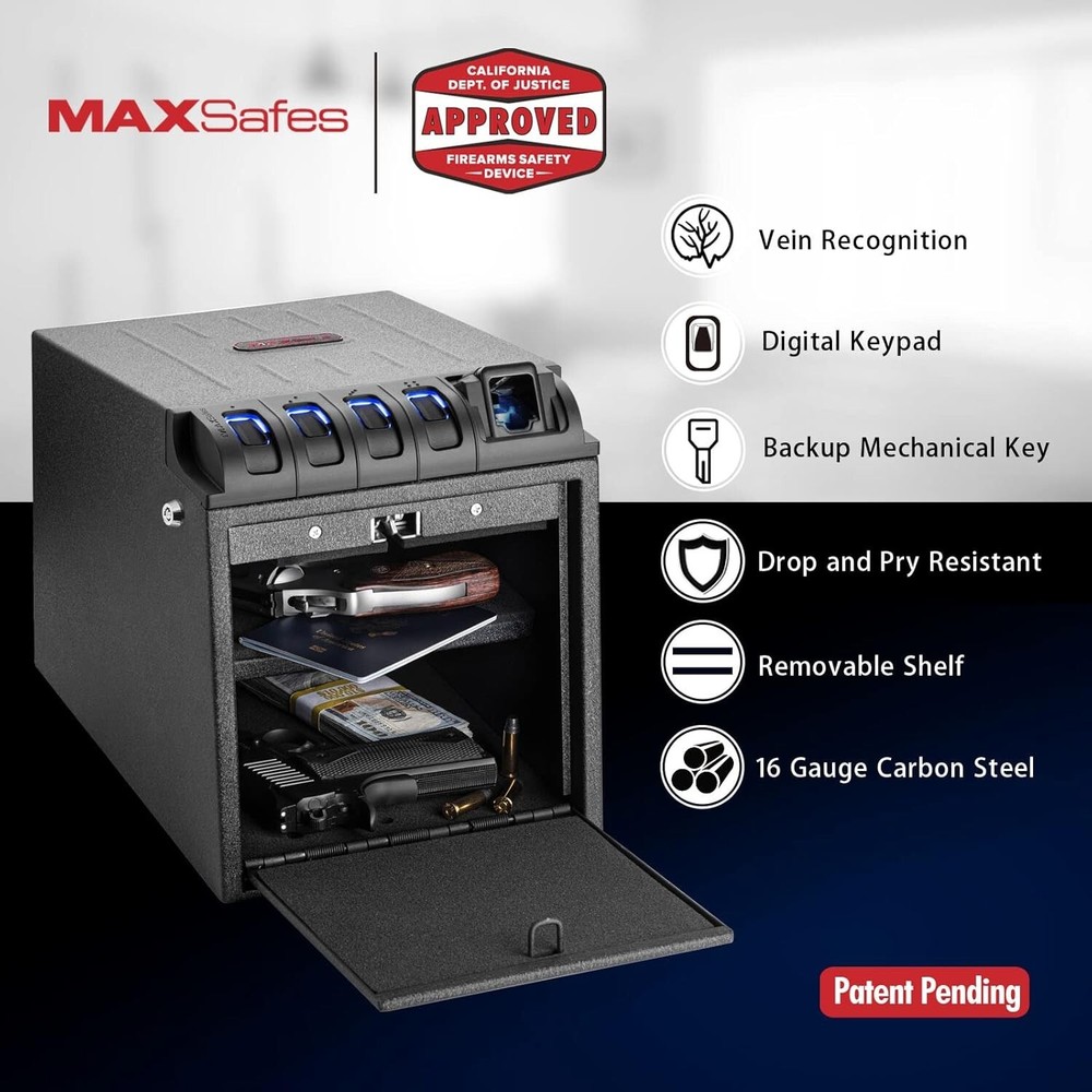 This safe is a game-changer for secure, fast firearm access. The vein recognition tech works flawlessly, even with wet or dirty hands, giving peace of mind without sacrificing speed. CA DOJ approval confirms its reliability, and the sturdy build feels solid. Perfect blend of cutting-edge security and quick accessibility when seconds count.
