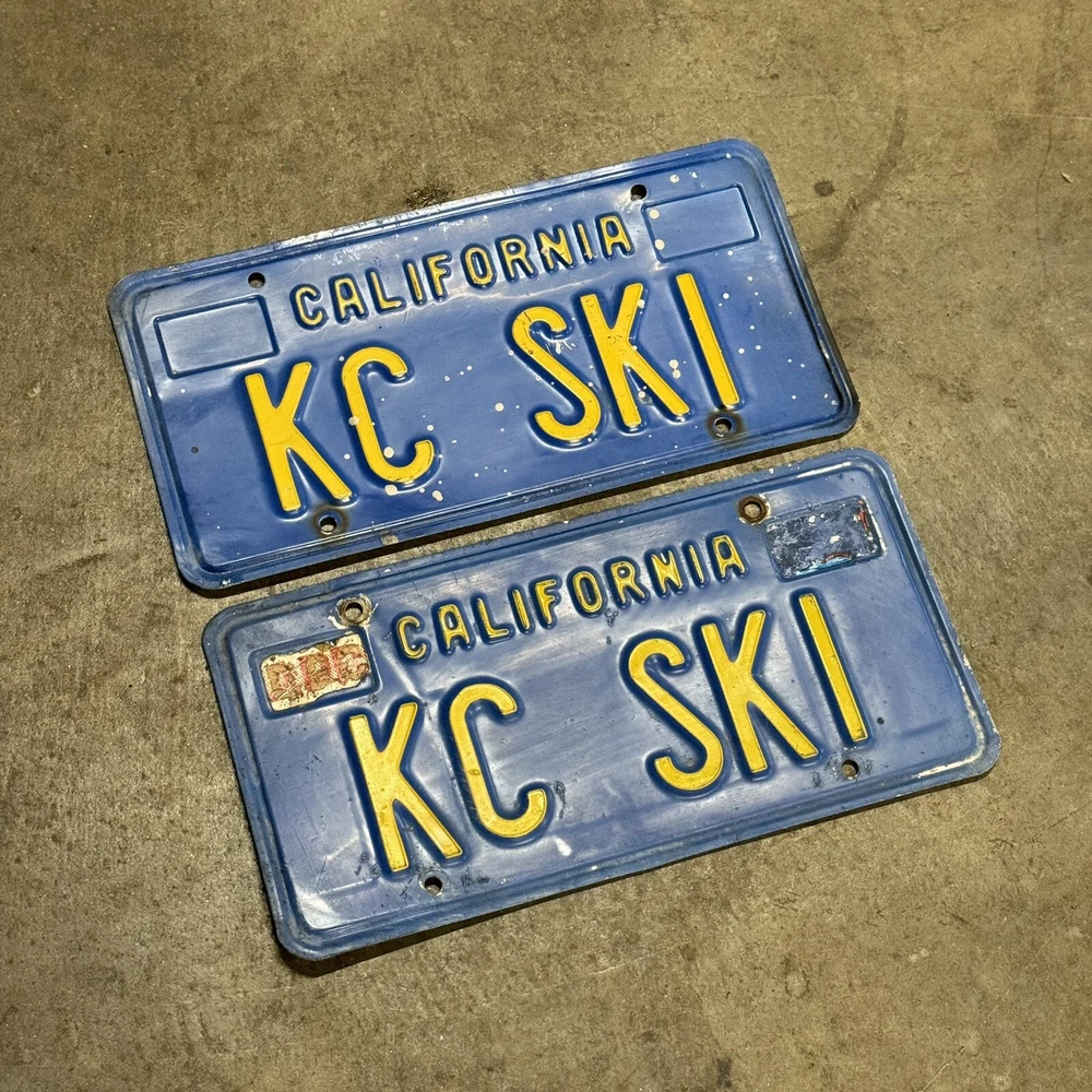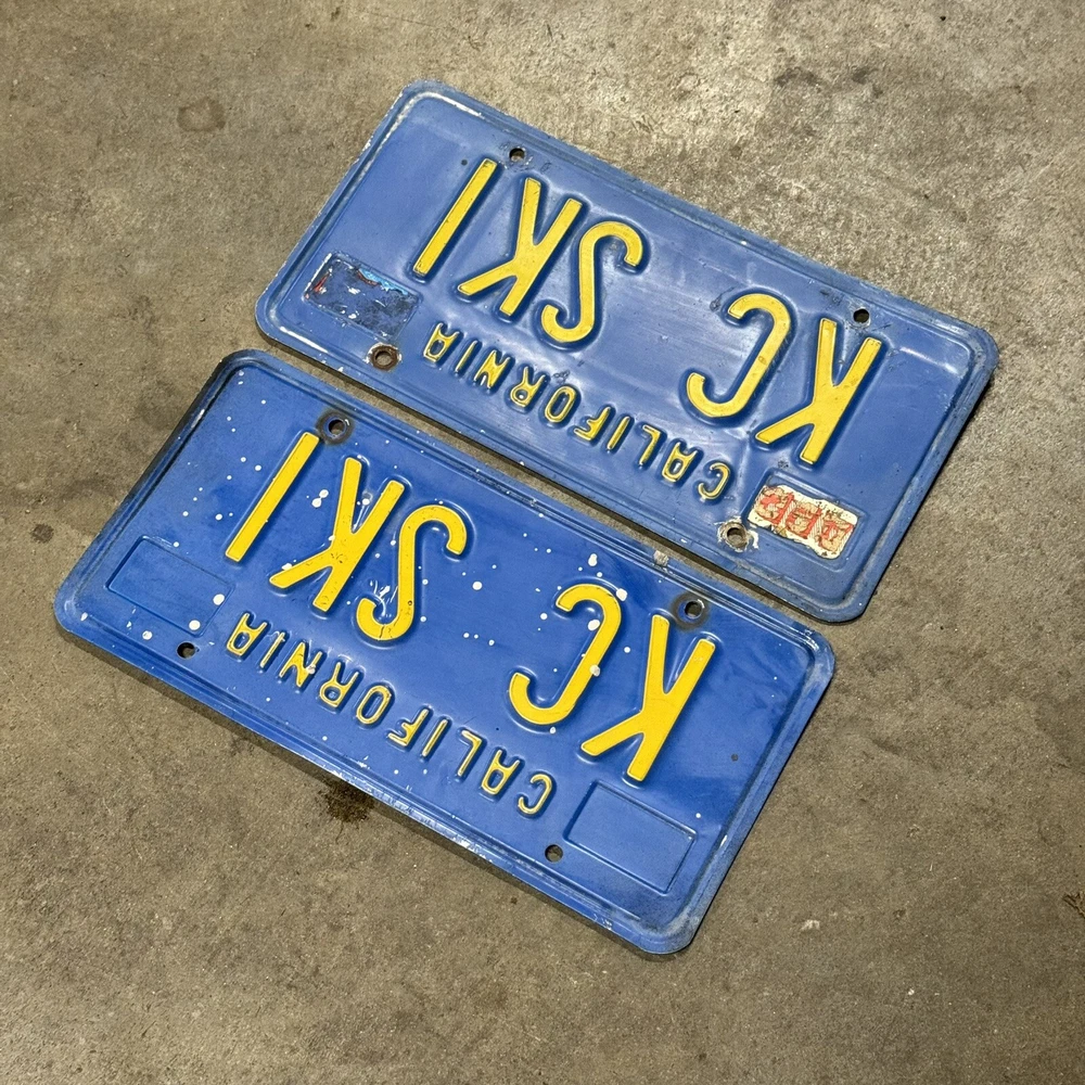 CALIFORNIA Vanity License Plate Pair Blue CA Personal Plates Set MATCHING KC SKI