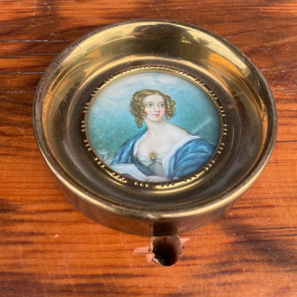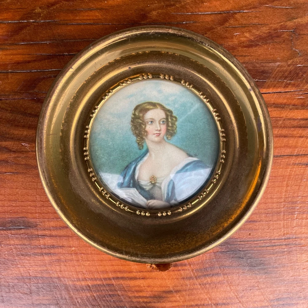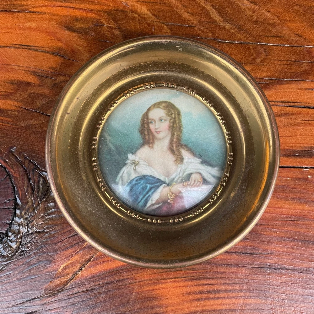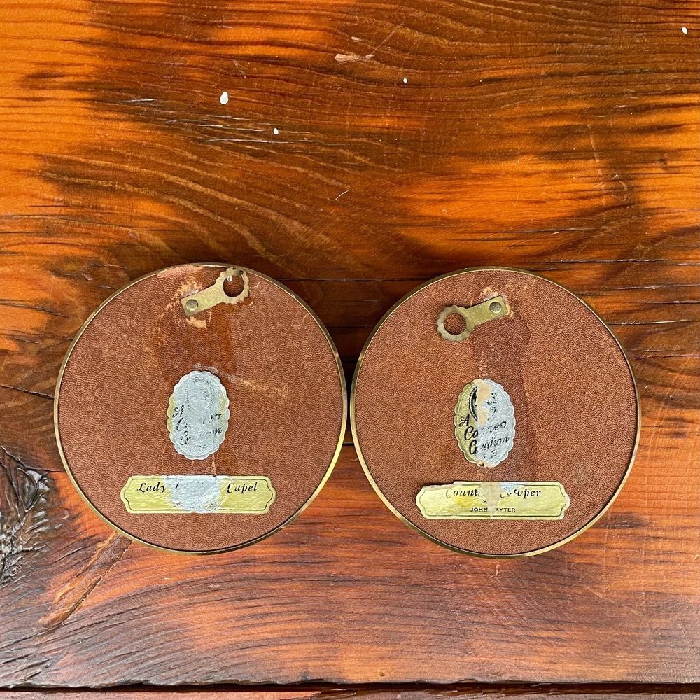 Vintage: A CAMEO CREATION Copper Framed Portraits of "Lady Cynthia Capel" and "Countess Cowper" They come in Bubble glassed frames that are mini sizes (4"W x 1'D) By JOHN Hayter. Skyler box for inventory.