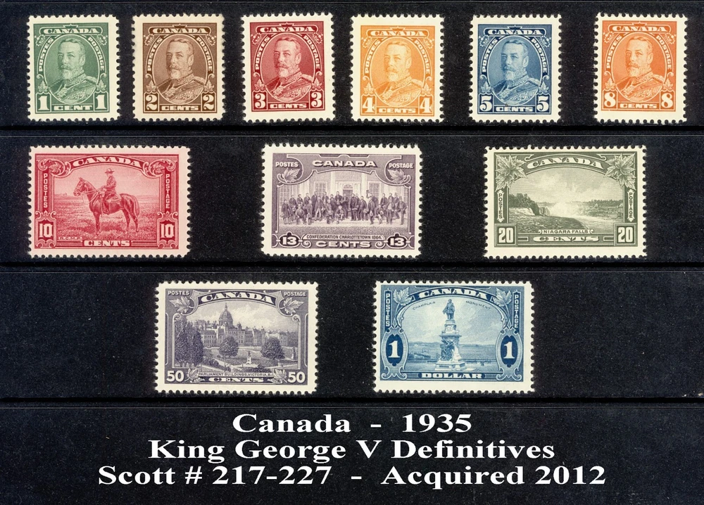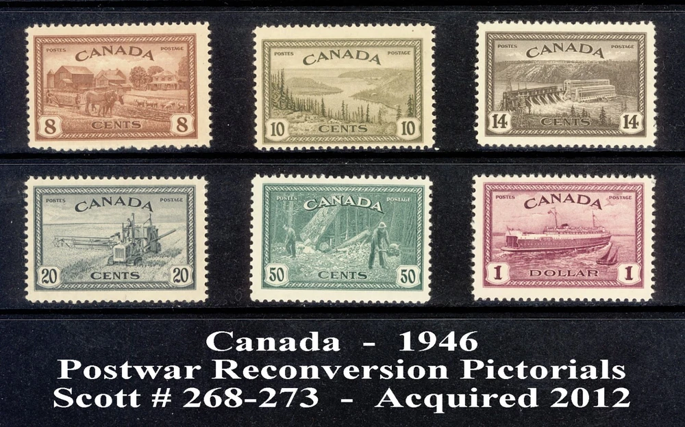 CANADA - KING GEORGE VI MINT/UNUSED STAMP COLLECTION IN PM MOUNTS ON ALBUM PAGES This listing is for a collection of 93 postage stamps issued by Canada during the reign of King George VI in 1937 - 1952- . Also included are the shoulder issues for the 1935 Silver Jubilee of King George V and the Coronation issue of Queen Elizabeth II in 1953. Included are almost all of the regular Scott numbers from 211 to 330. These stamps have been carefully stored in a smoke-free environment. All are mounted in plastic front/black background individual or strip mounts and placed on pages from the Scott Specialty Album for Great Britain The blank pages for issues before 1935 are also included, The album cover is not included. All stamps are unused.. This is a really nice collection and a good start on a British Commonwealth collection. Shipping charges are included in our prices for stamps. Add USD 3 for Canada or USD 6 for Europe or Australia, if offered to those countries. Shipping is usually via USPS boxed Priority Mail. Payment must be via PayPal and should be completed within 48 hours of the purchase date and time. Basically we do not accept returns but will consider allowing a return under highly extraordinary circumstances and at our discretion. Otherwise all prices are firm (except auction items) and all sales are final. We do not respond to requests for lower prices. Thank you for visiting Salon Streamline!