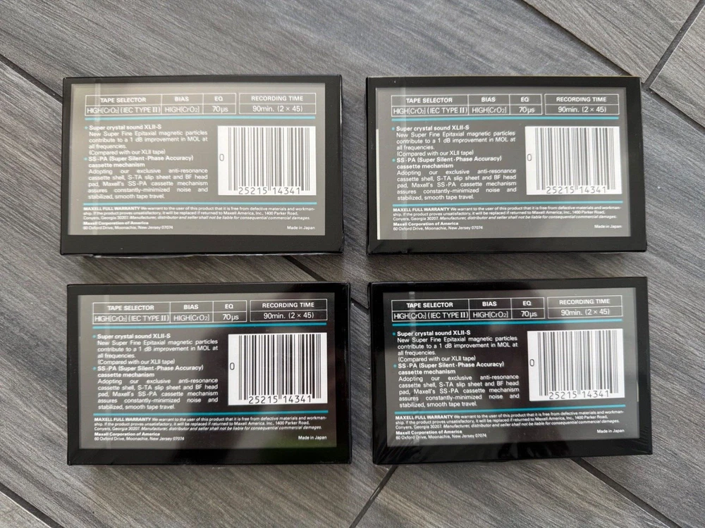 QTY 4: MAXELL SUPER FINE EPITAXIAL CASSETTE, XLII-S 90, IEC TYPE II, NEW-SEALED. Up for sale is a quantity of 4 Maxell Super Fine Epitaxial Cassettes, XLII-S 90, IEC Type II - all brand new and sealed.