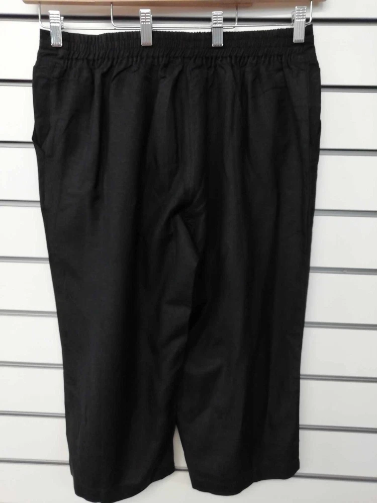 Elevate your wardrobe with these sleek Capsule wide-leg culottes, perfect for a woman who appreciates comfort with a touch of elegance. These trousers, in a versatile black shade, are tailored in a regular size 16, ensuring a flattering fit for various body types. Their cropped design adds a modern twist, making them an ideal choice for both casual and semi-formal settings. Crafted from a premium linen blend, these culottes promise breathability and durability. The lack of pattern allows for endless styling possibilities, whether paired with a simple tee for a day out or a smart blouse for an office ensemble. With a comfortable inside leg measurement of 19 inches, these trousers are a staple that fuses convenience with chic sophistication.