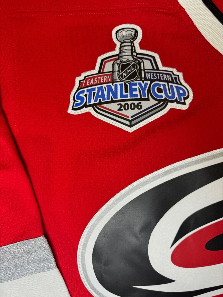 The product is a Mitchell & Ness Brindmore Jersey in size M celebrating the Carolina Hurricanes as Stanley Cup Champions. The jersey features a multi-color design and is designed for men who support the National Hockey League team. This officially licensed fan apparel is perfect for fans of the Carolina Hurricanes looking to show their team spirit and commemorate their Stanley Cup victory.
