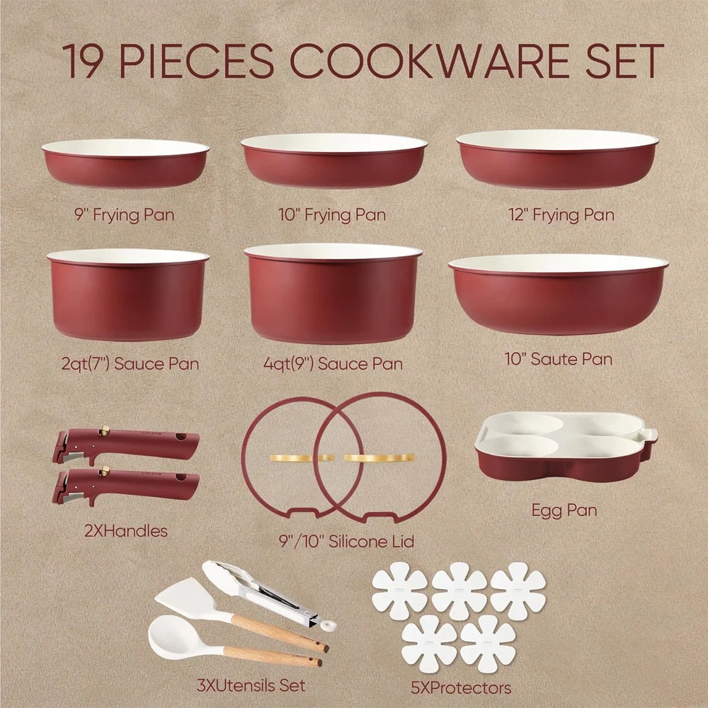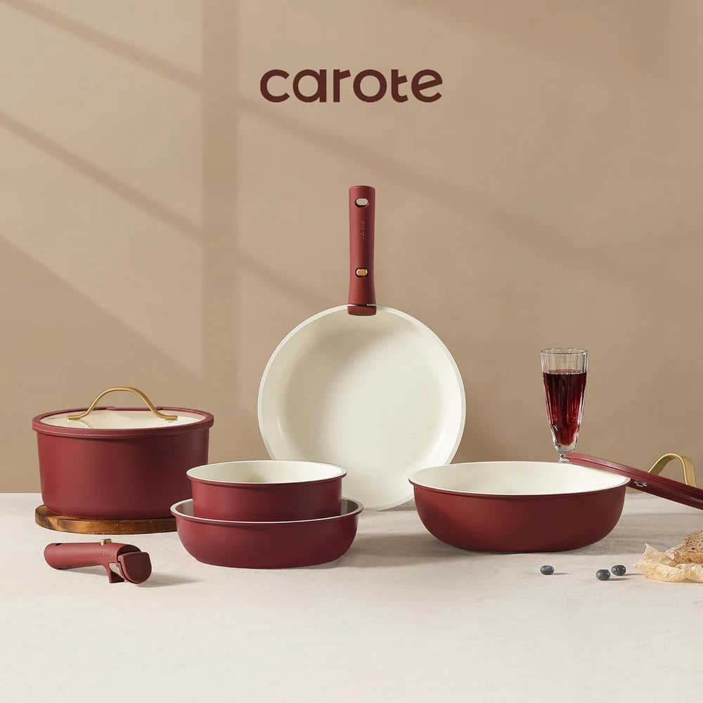 Store New Arrivals Add to Favorite View Feedback Contact CAROTE 19Pcs Pots and Pans Set, Nonstick Cookware Set Detachable Handle, Induction Kitchen Cookware Sets Non Stick with Removable Handle, RV Cookware Set, Gold and Red Description Closure Material granite Brand Name CAROTE Color Garnet Red Brand CAROTE Material Granite Material Type Granite Is Oven Safe Yes Handle Material Bakelite with silicone Size 19pcs Cookware Set Material Type Free PFOA Free, Lead Free Manufacturer CAROTE Is the item dishwasher safe? No Compatibility Options All stoves compatible Included Components 10'' fry pan ๐ญ๐๐ ๐ ๐ช๐๐๐๐๐๐-๐๐๐๐ ๐ช๐๐๐๐๐๐๐ : Optimal storage and easy stacking with the handles off saves up to 70% more space of Carote detachable handle pots and pans set. ๐ญ๐๐ ๐ ๐ญ๐๐๐-๐๐๐๐ ๐ช๐๐๐๐๐๐๐: As both a cookware set and a dinnerware set, 1-time cleaning for all. Cleanup with ZERO elbow grease thanks to the nonstick granite. ๐ด๐๐๐๐๐๐๐๐๐๐๐ ๐ช๐๐๐๐๐๐๐ ๐บ๐๐: Removable handle for the ultimate versatilityโ go from ALL kinds of hobs to the oven, to the grill, to the fridge, and onto the table in a click. ๐๐๐ ๐๐๐โ๐ ๐ช๐๐๐๐๐๐๐๐๐ ๐๐ ๐ธ๐๐๐๐๐๐: Balanced convenience-rich features, rapid and even heat transfer, and nonstick performance as the same as other Carote cookware sets. ๐บ๐๐๐๐๐๐ & ๐ฎ๐๐๐๐๐๐๐๐: Each CAROTE cookware passes a strict multi-inspection process. In case you received defective items caused by delivery, please don't hesitate to reach out, You will be guaranteed to get a solution or a new replacement. Product Description What benefits can the detachable handle cookware set bring to you? 70% Space-saving: Perfect stacking in storage compartments like drawers, cabinets, RV, camping use, travel trailer, and motorhome. Effortlessly Move: Removable handle for the ultimate versatilityโ go from ALL kinds of stoves to the oven, grill, fridge, and dinner table. Non-stick Cookware Sets Less Oil Required! With an ultra scratch-resistant smooth surface, this detachable set combines breath-taking design with the latest in non-stick advances. Cleanup within seconds Less Water Needed! Easy-to-clean pans and pots finished with an enhanced nonstick exterior make cleanup easy and with zero elbow grease. 4-in-1 Detachable Set Less Space for More Choices 1 Bakeware 2 Cookware 3 Dinnerware 4 Storage Click, Cook, Carote We recommend detaching the handle while cooking with open flames to extend the lifespan of the handle. Click, Cook, Carote ABOUT US We offer the best prices around on high quality products. Our E-store includes media such as books, movies, music and games while offering electronics, toys, sporting apparel, clothing, tools, general home, garden items and more. SHIPPING We are always working hard to ensure your package arrives as soon as possible. Please understand that some factors like weather, high postal traffic, and the performance of shipping companies are outside of our control. For shipping outside of the continental USA, we only use eBay's Global Shipping Program.The item is shipped to KY and then sent to the rest of the world. International customers are responsible for all duties and taxes. Continue to check out in order to calculate costs for shipping the item to your country. Messages regarding eBay's Global Shipping Program MUST be directed at eBay EXCLUSIVELY. RETURNS We offer a 30-Day Return Policy on items which you are not completely satisfied with. You have the option for a full-refund or an exchange of the item. No returns are available on items shipped outside of the USA. PAYMENT We accept PayPal. CONTACT US This page content is yet to come Please ad us to your favorite seller and visit again later Thank You CUSTOMER SATISFACTION We try our very best to make sure every customer is completely satisfied. If there's a problem, message us! We're happy to help. WE ACCEPT Copyright ยฉ 2021 AutoDS. | All Rights Reserved