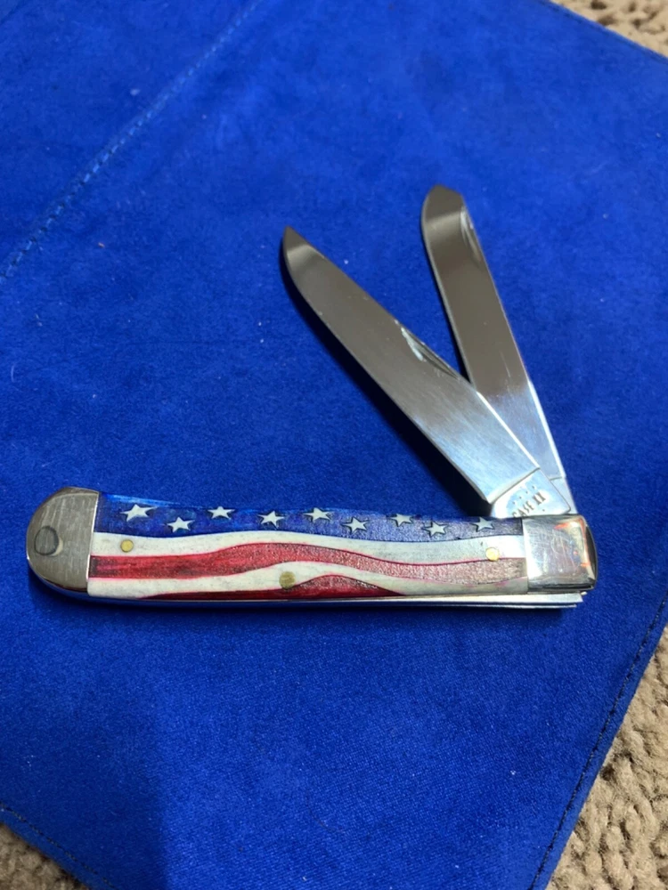 CASE XX POCKET KNIFE PATRIOTIC SMOOTH NATURAL BONE TRAPPER