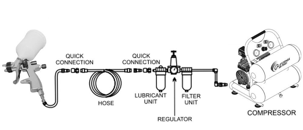 CAT-33000 LVLP (Low Volume Low Pressure) Gravity Feed Spray -piece lightweight aluminum body with 20 oz. / 0.6 l / 600 cc plastic cup . Separate and Adjustable fluid, fan pattern and air controls for precise application Stainless steel fluid needle and nozzle - corrosion resistant for longer life Tip size: 1.3 mm Air consumption 3.5 to 3.9 CFM @ 30 PSI Working pressure 28-45 PSI. Maximum pressure 60 PSI Fan Pattern: 7.0'' to 10.9'' Very low overspray that optimize material consumption and waste Includes extra Spanner, Brush, and socket