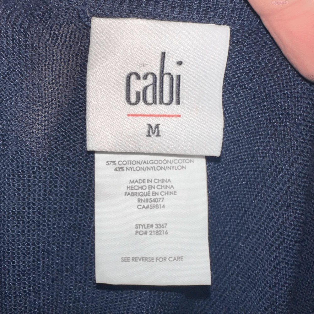 CAbi Regiment, navy and white, striped, nautical, lightweight, romantic, minimalist, elevated basics sweater . Pairs well with a jeans or slacks. Approximately 19 inches from armpit to armpit, 28 inches long. In good, used condition. From a pet and smoke free house.