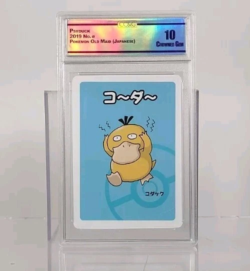 This CC&G 10 Crowned Gem *Psyduck* 2019 Japanese Pokemon Old Maid Card NN is a highly sought-after addition to any Pokémon TCG collector's deck. With its beautiful design and rare status, this card is sure to impress. The card features the beloved Psyduck and is written in Japanese language. It was manufactured in 2019 and is of the Pokémon card type. This collectible card game individual card is perfect for fans of the Pokémon franchise and collectors alike. Add it to your collection today and watch as this card becomes the envy of all your friends. See Photos 📸