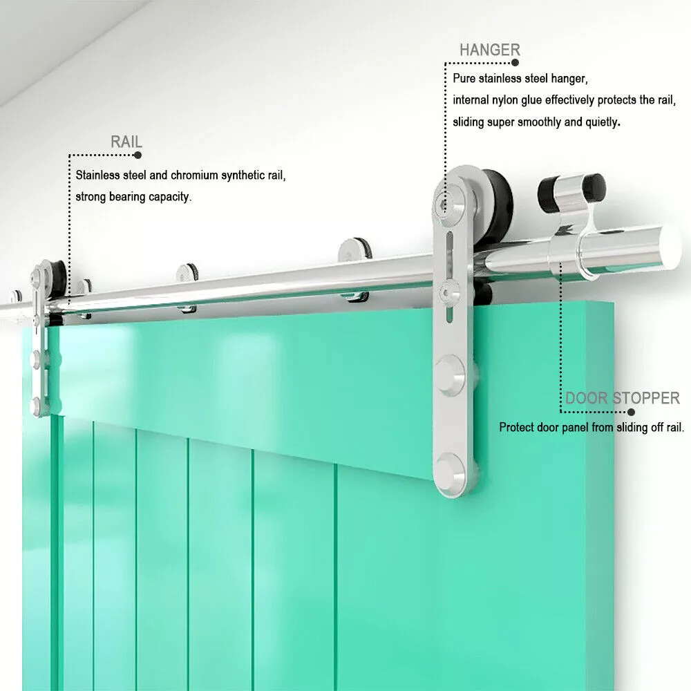 CCJH Sliding Door Hardware System Stainless Steel Duty Barn Door Kit Product Description Is your home furnished in retro style? Or do you prefer a more modern style? Are you struggling with the small space in your house where you can not install the sliding door? Do you like the decorative style of sliding doors? If you like it, choose our sliding door system CCJH. We offer a single door, double door and bypass double door. The traditional design elements make both the rustic and modern surroundings look simple and elegant, save space and are practical. Material: Track: Stainless steel. Roller material: Premium nylon. Maximum door weight capacity: Up to 330 lbs per roller pair. Suitable for sliding door thicknesses: 1.18''--1.57''. The Top Edge of the doors to the ceiling: The minimum distance is 4.3''. Special D esign : Carbon steel roller: The super load-bearing capacity of the inner nylon wheels does not wear the rail when rolling. Adjustment screw: The roller screws can be infinitely adjusted within the door thickness from 3 cm to 5 cm (1.18''-1.97'') in any size. Anti-Jumper: With the small round panes, your door cannot be lifted off the rail. Door stoppers: Unique spring design: Spring door stoppers play a buffer role and reduce impact noise when opening and closing the door. Wooden dowel: Insert the wooden dowel into the hole, the hole diameter will not increase, which will stabilize the nail in the wall and the whole system will run stably. Step-by-step instructions: Each step has been accurately measured in practice and detailed measurements written. For Single Door : 1) 2 x Rollers 2) Wall bracket set (1 rail hole needed 1 set) 3) 2 x Door Stopper 4) 4 x adjustable roller screws 5) 2 x anti-jump blocks 6) 1 x floor guide 7) Pre-drilled splicing rails For Double Door : 1) 4 x Rollers 2) Wall bracket set (1 rail hole needed 1 set) 3) 4 x Door Stopper 4) 8 x adjustable roller screws 5) 4 x anti-jump blocks 6) 2 x floor guide 7) Pre-drilled splicing rails How to choose the track length: The length of the rail should be twice as large as the door panel (Since your door is 2-foot wide, you will need a 4-foot hardware kit). Payment Policy Shipping Policy Returns Policy Payment Policy 1 . Our Store accept many of payment options, including credit cards, debit cards, Apple Pay, Google Pay and PayPal. 2.All major credit cards are accepted through secure payment processor PayPal. 3.Payment must be received within 7 business days of auction closing. 4.We ship to your eBay or Paypal address. Please make sure your eBay and Paypal address is correct before you pay. Shipping Policy Item will be shipped within 1 business day after full payment is received. You should receive item within 3-7 days. Email us if not receive items after 10 working days after full payment sent. Shipment may be influenced by the weather / custom /holidays and other uncertainties. If it is delayed, the item may reach some more days later than the estimate delivery date. But we will try our best to ensure the items reach soon. Returns Policy 1.We accept items return within 30 days from the date you receive the package. 2.Buyer must contact us to obtain a Return Authorization from our company. 3.Refund given as Money Back, once receiv ed the return item. Copyright © 2023 Dianxiaomi