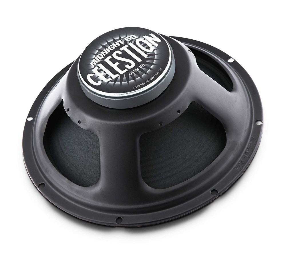 CELESTION Midnight 60 Guitar Speaker Specifications : Nominal diameter : 305mm / 12in || Nominal power rating : 60W || Rated impedance : 8Ω or 16Ω || Sensitivity : 96dB || Frequency range : 75-5000Hz || Resonance frequency, Fs : 75Hz || DC resistance, Re : 6.82Ω & 13.12Ω || Voice coil diameter : 1.75in / 44mm || Chassis type : Pressed steel || Magnet type : Ceramic || Magnet weight : 0.6kg / 20oz Mounting Information : Unit weight : 2.5kg / 5.5lb || Magnet structure diameter : 115mm / 4.5in || Mounting hole dimensions (mm) : 7.9mm || Mounting hole dimensions (in) : 0.31in || Mounting hole PCD (mm) : 297mm || Mounting hole PCD (in) : 11.7in || Number of mounting holes : 8 || Overall depth : 120mm / 4.7in || Cut-out diameter (mm) : 283mm || Cut-out diameter (in) : 11.1in The Midnight 60 continues Celestion’s tradition of delivering rich, classic British tone in innovative new ways, featuring the moving parts that were inspired by the V-Type design, but with a different magnet assembly which has the effect of shifting the tonal balance to give a sonic character more reminiscent of Celestion’s vintage G12L speaker. Whatever the genre, Midnight 60 provides an exhilarating sound in the classic Celestion style. Cleans are well balanced with just enough top end to make the high frequencies sparkle. Overdriven this speaker brings searing rock tones with plenty of low-end warmth and mid-band character.