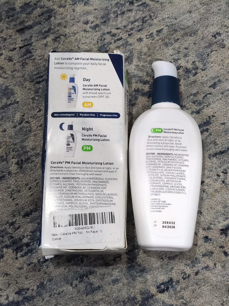 CERAVE Face Lotion for Night with Hyaluronic Acid, 2 FL oz NEW FREE SHIPPING.