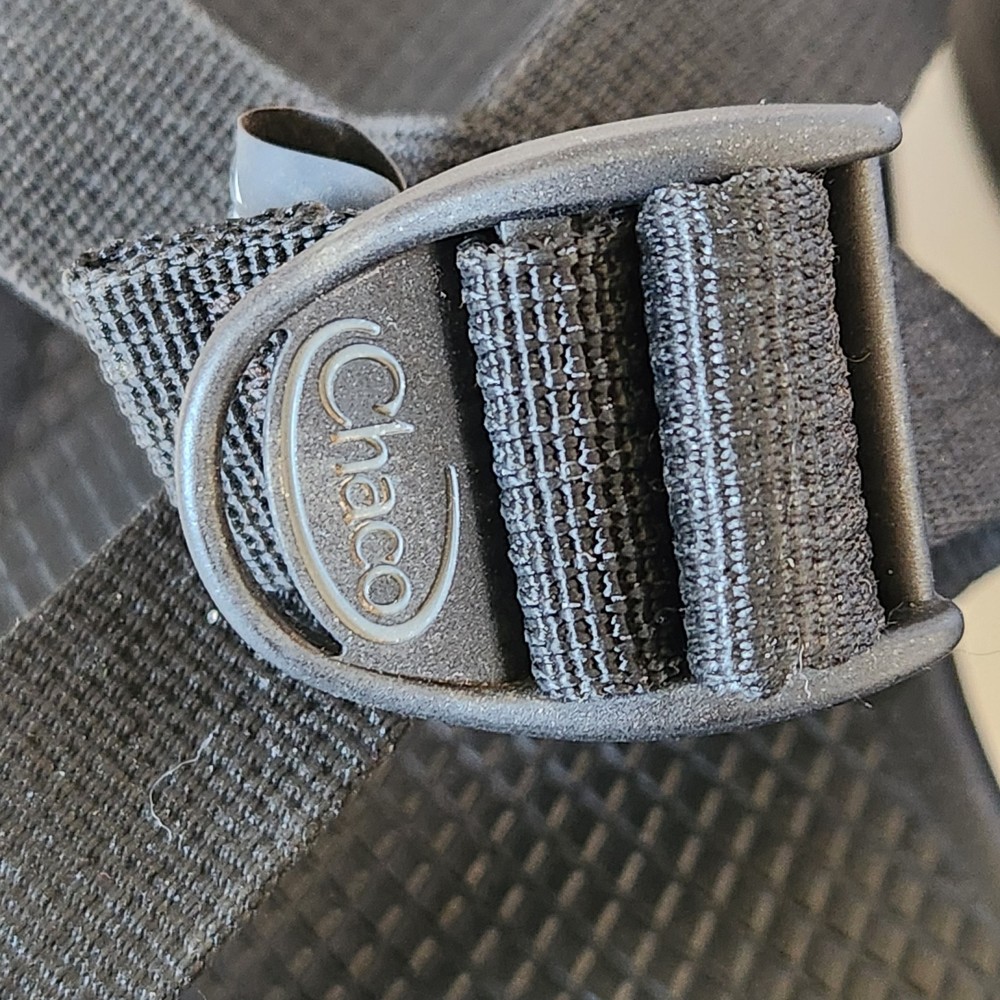 Men's Chaco black Z-Strap sandals, style #J105375 Z/1 Classic Black, size 10. Shoes are in like new condition with only minor signs of being worn for a short time.
