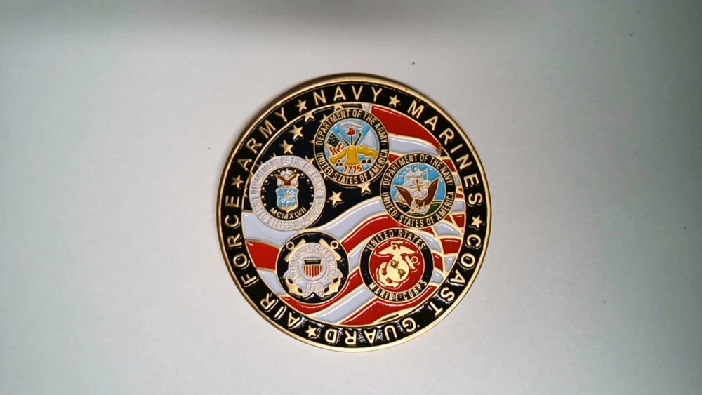 Challenge Coin APPROX 2 INCHES Ok, most folks know me by now. You also know my reputation as being a good, honest seller. I am, however, human and make mistakes. If you contact me first, I will do everything I possibly can to make it right. If, however, you open a case against me, do not respond to my emails, and try to slam me to the wall, then you will need to find yourself another supplier, as you will not be able to purchase from me again. Sorry folks, this ain't Walmart. With that being said, I have a better selection simply because I do not limit myself to only one supplier. Sure, I could do that and never run out of the same coins. But, I search high and low for interesting and unique coins. I go to shows, flea markets, yard sales, and antique stores searching for different coins. My prices are not the cheapest, but certainly not the highest either. They are based on the rarity of the coin and how much I had to pay to get it. Challenge Coins are becoming a huge collectable item these days. The history goes way back and you'll hear of different stories of the first one being made from WW2 to Vietnam and even the British. I don't know which story is true. What I do know is that soldiers love these and are awarded them when special deeds are done that are more deserving than just a pat on the back but less deserving of an achievement oin award. These coins will come from Generals, Colonels, Command Sergeant Majors or just about anyone in the chain of command. Almost all units in the military have designed their own unique coins. They make great keepsakes and wonderful conversational pieces. Average features of my coins unless otherwise noted: Dimensions- SHOWN ABOVE Mate rial- Bronze mostly Condition- USED unless otherwise noted Color- Mostly colorful on both sides unless an older coin You will find many many sellers of challenge coins out there with prices ranging from 4.99 to 19.99 and postage from free to 4.50. I try my best to split it somewhere down the middle so I make a little profit and you get a fair price. There are also some very goodsellers out there. Just be sure to check feedbacks. I try to be as honest and fair as I can with very quick shipping. PLEASE CHECK OUT MY ALL NEW EBAY STORE Please pay within 5 Days so I can assure prompt delivery and processing. All my Merchandise comes from a smoke free invironment Add me to your Favorites list Challenge coins, world coins, beer tucks, civil war LISTED STARTING 12 APRIL 2024 IN LAUNDRY ROOM PLASTIC CONTAINER ON RIGHT TMCA 2