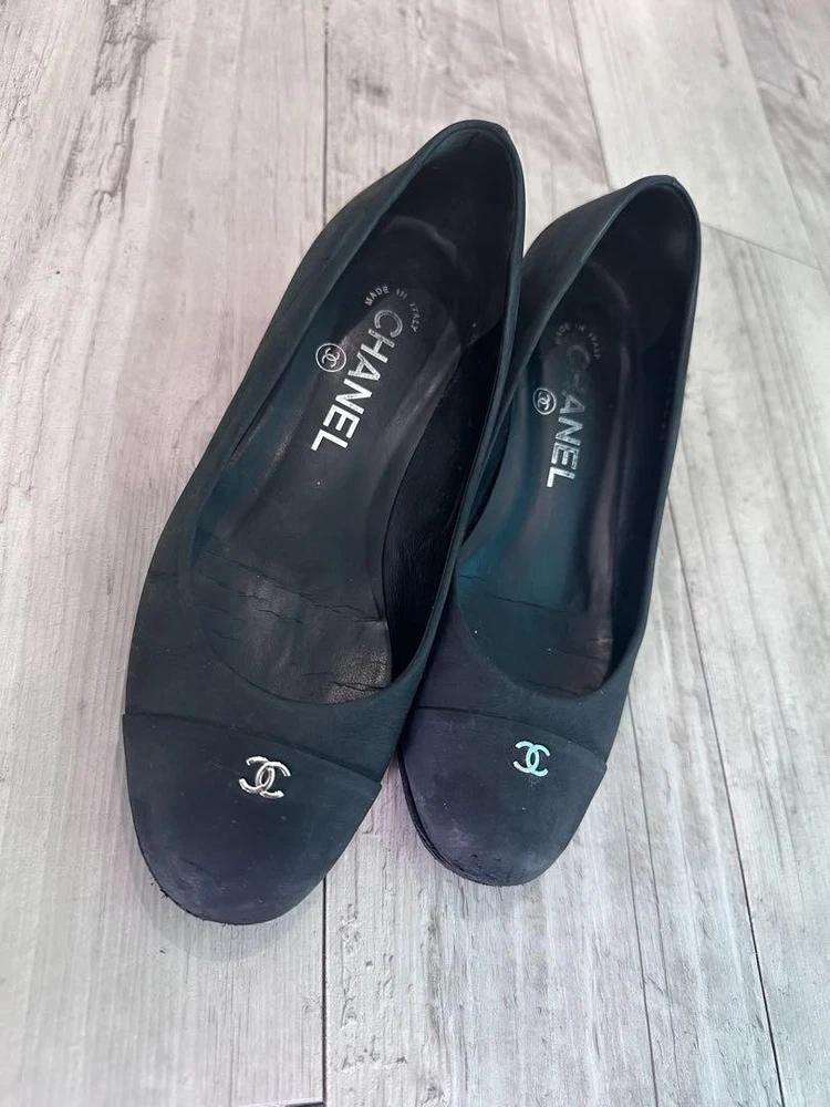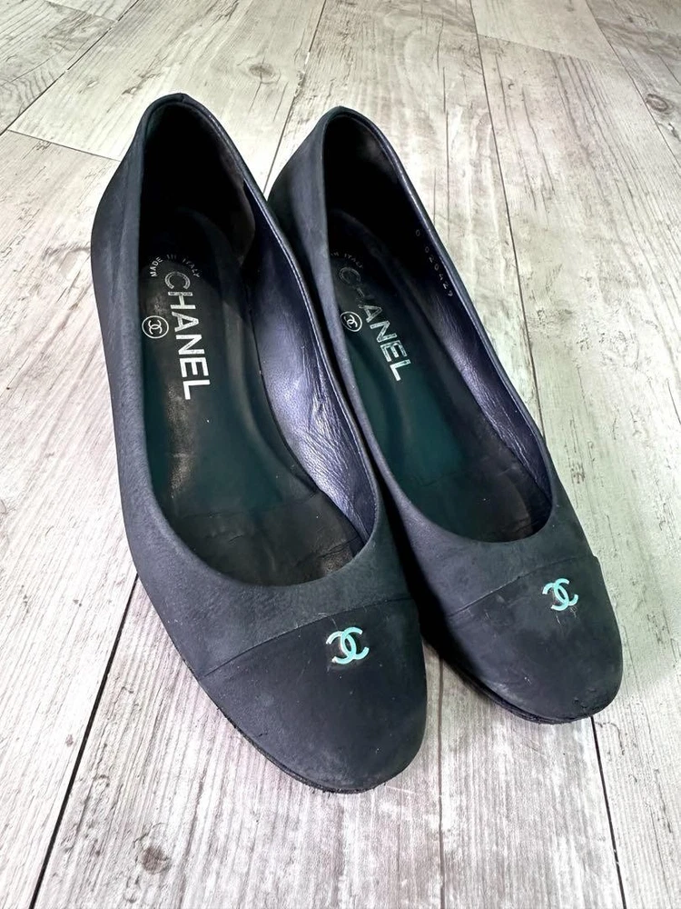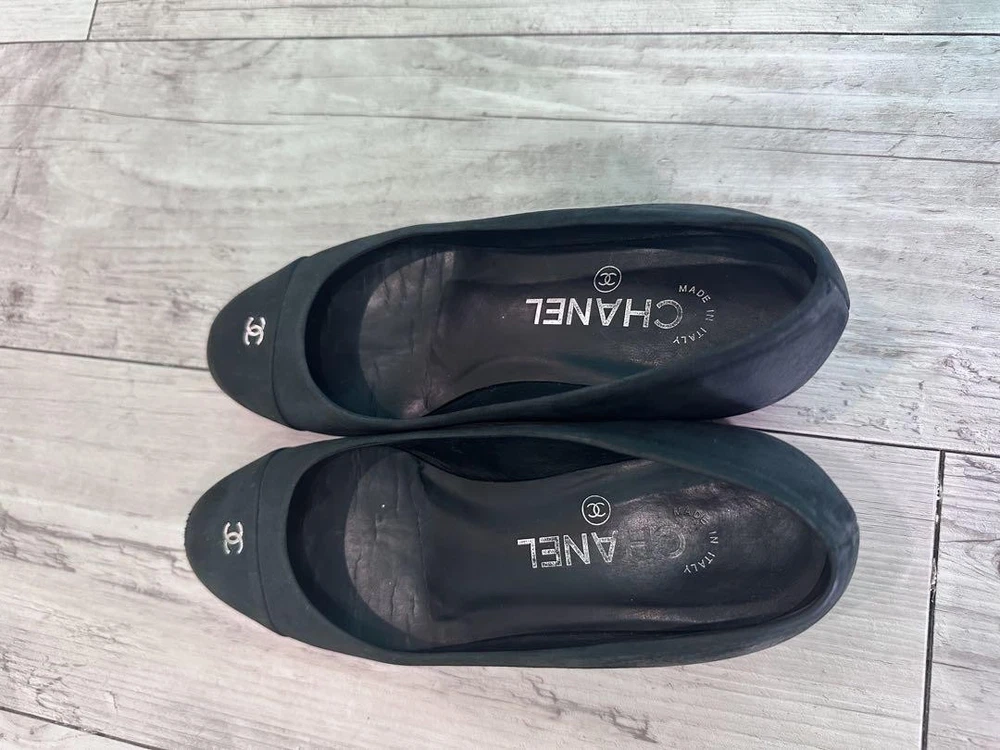 Rare CHANEL Black Suede Pumps Size 35 US 5.5 CC Logo Elegant Women's Shoes Description * Brand: CHANEL * Color: Black * Size: 35 (US 5.5, UK 3, 22 cm / 8.66 inches) * Design: Pumps * Material: Suede-like * Heel Height: Approximately 3.5 cm / 1.38 inches * Condition: Gently used, slight scuffing on the toe area. * Sole: Anti-slip pads newly attached. Thank you very much for visiting my auction. Language: Japanese Please judge with a photograph. Please have a question I want to do a good deal Payment I accept PAYPAL Payoneer Please make the payment within 5 days after the end of auction. Shipping Worldwide Shipping: Economy shipping, Japan Post, with tracking number EMS+20$ (insurance &tracking number 3-7 days to USA.) Terms of Sale If you would like to know more about this item, please contact me before bidding. Items will be sent out within 4 business days after the payment received. When there is a different problem from the indicated contents, please tell me about it within two week. I accept returns only if items did not match the description. Buyer pays return shipping. About Us Return is accepted if only the item is different from item's description. Thank you for looking!!! International Buyers - Please Note: ・Import duties, taxes and charges are not included in the item price or shipping charges. These charges are the buyer’s responsibility. ・Please check with your country’s customs office to determine what these additional costs will be prior to bidding/buying. ・These charges are normally collected by the delivering freight (shipping) company or when you pick the item up - do not confuse them for additional shipping charges. ・We do not mark merchandise values below value or mark items as “gifts” - US and International government regulations prohibit such behavior.