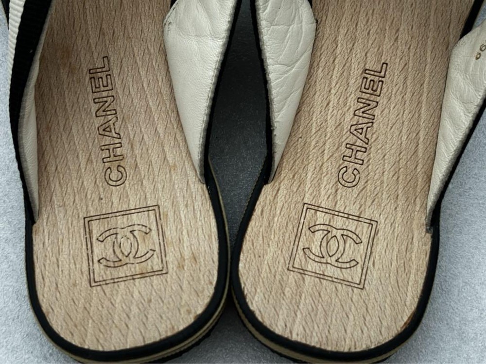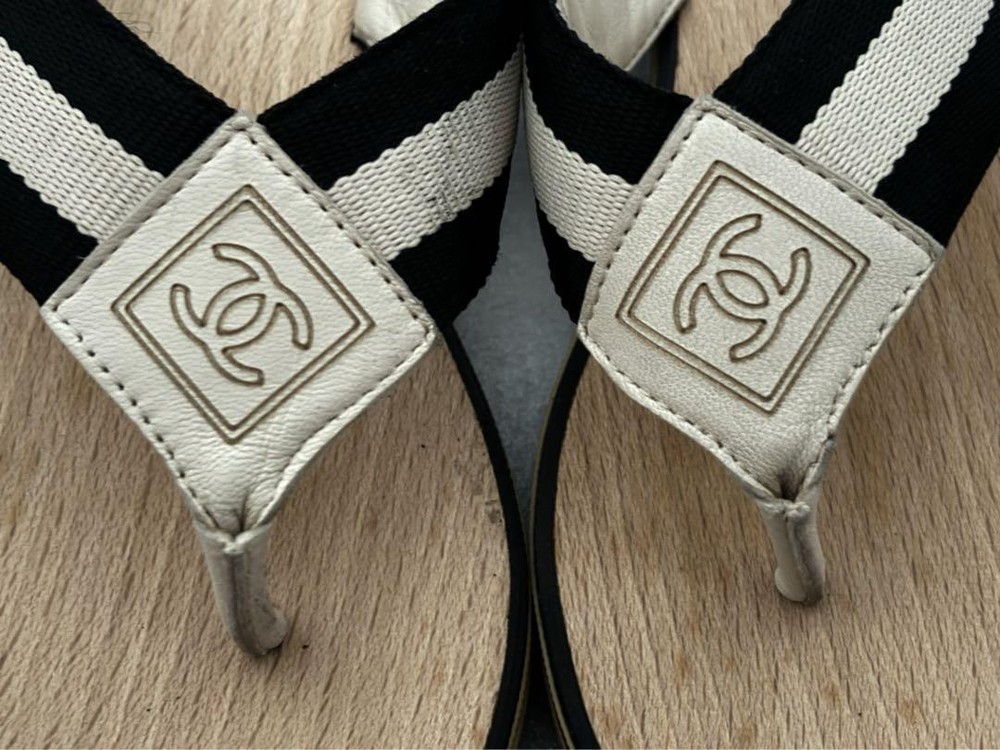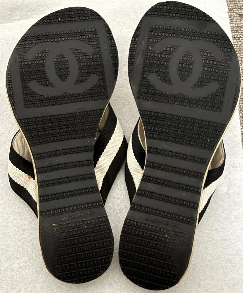 Absolutely love these CHANEL thong sandals! The black and white striped strap with the iconic CC logo is so chic and timeless. The wood sole adds a unique touch, making them both stylish and comfortable. Even though they're pre-owned, the condition is fantastic—just minor signs of wear that don’t take away from their elegance. Shipping was fast and secure, and knowing they’re 100% authentic gives me total peace of mind. Perfect for summer outings or adding a luxe touch to any casual look. Highly recommend!