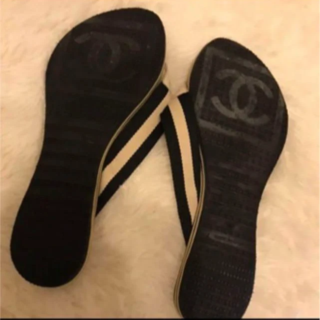 These CHANEL thong sandals are a chic summer staple! The black and white striped CC logo strap adds a timeless, elegant touch, while the wood sole keeps them comfortable and stylish. Even though they’re pre-owned, they’re in great condition with only minor signs of wear—totally worth it for authentic Chanel at a better price. Shipping was fast and reliable, with tracking included. Love how versatile they are, pairing perfectly with everything from jeans to dresses. Highly recommend for anyone looking for luxury without the full retail price!