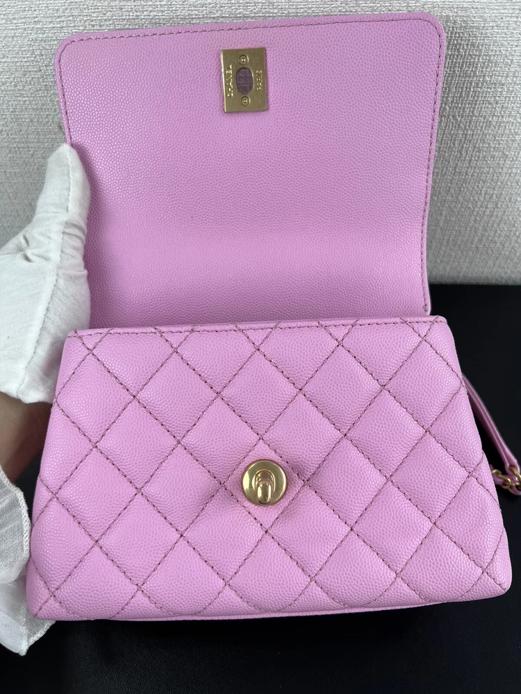ID 60549181 【 SIZE 】 width: 18 x6 x 12 cm 【 CONDITION 】 Condition rank: A Color : Pink Inside : ◎ Outside : ◎ Smell: - Metal : ◎ Chain : ◎ ☆ Evaluation ◎ =4, 〇 =3, △ =2, × =1 * This is a second hand bag, therefore there are some wear and smell. Please check a product carefully before purchasing. Brand : CHANEL Material : Leather Pocket : One normal pocket, one fastner pocket Accessories : Dust Bag Authenticity card : Unavailability Serial seal : Available